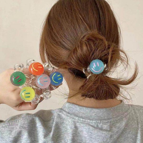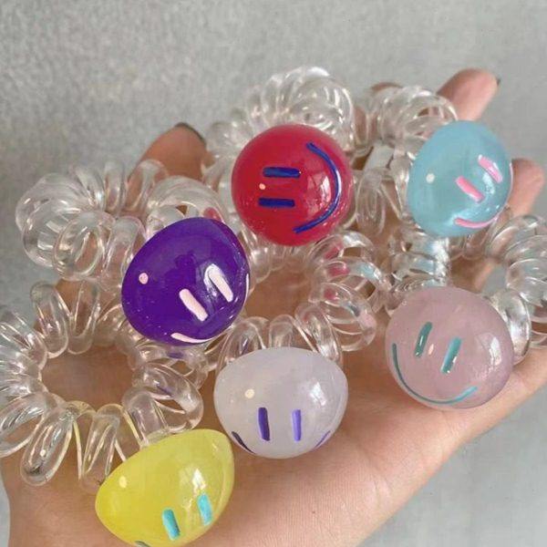 电话线发绳发圈可爱笑脸头绳女2024年弹力头绳扎头不伤发橡皮筋