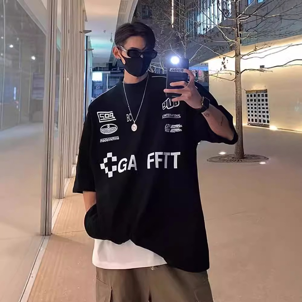 2025新款潮牌短袖t恤男女夏季宽松百搭胖子加肥加大码体恤上衣潮
