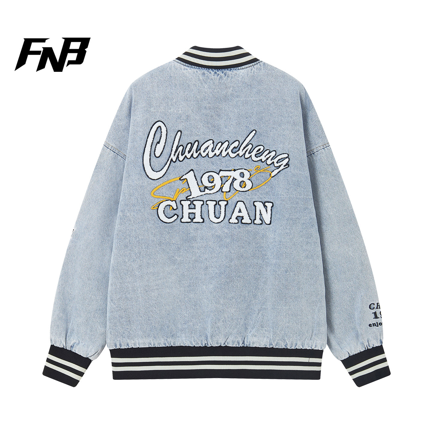 FNB美式高街复古风刺绣棒球服牛仔外套男女款宽松春季潮流夹克