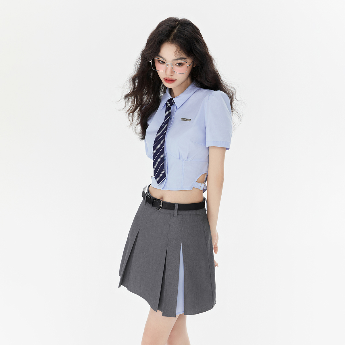 EPTISON学院风套装女2025夏季新款辣妹小个子盐系衬衫短裙两件套