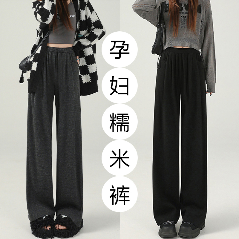 孕妇糯米裤春秋外穿2025新款宽松大码阔腿裤无托腹休闲拖地裤夏装