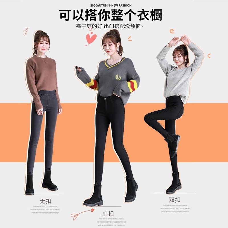 松紧腰牛仔裤女2021秋冬春秋薄款无磁紧身打底裤外穿小脚铅笔裤子