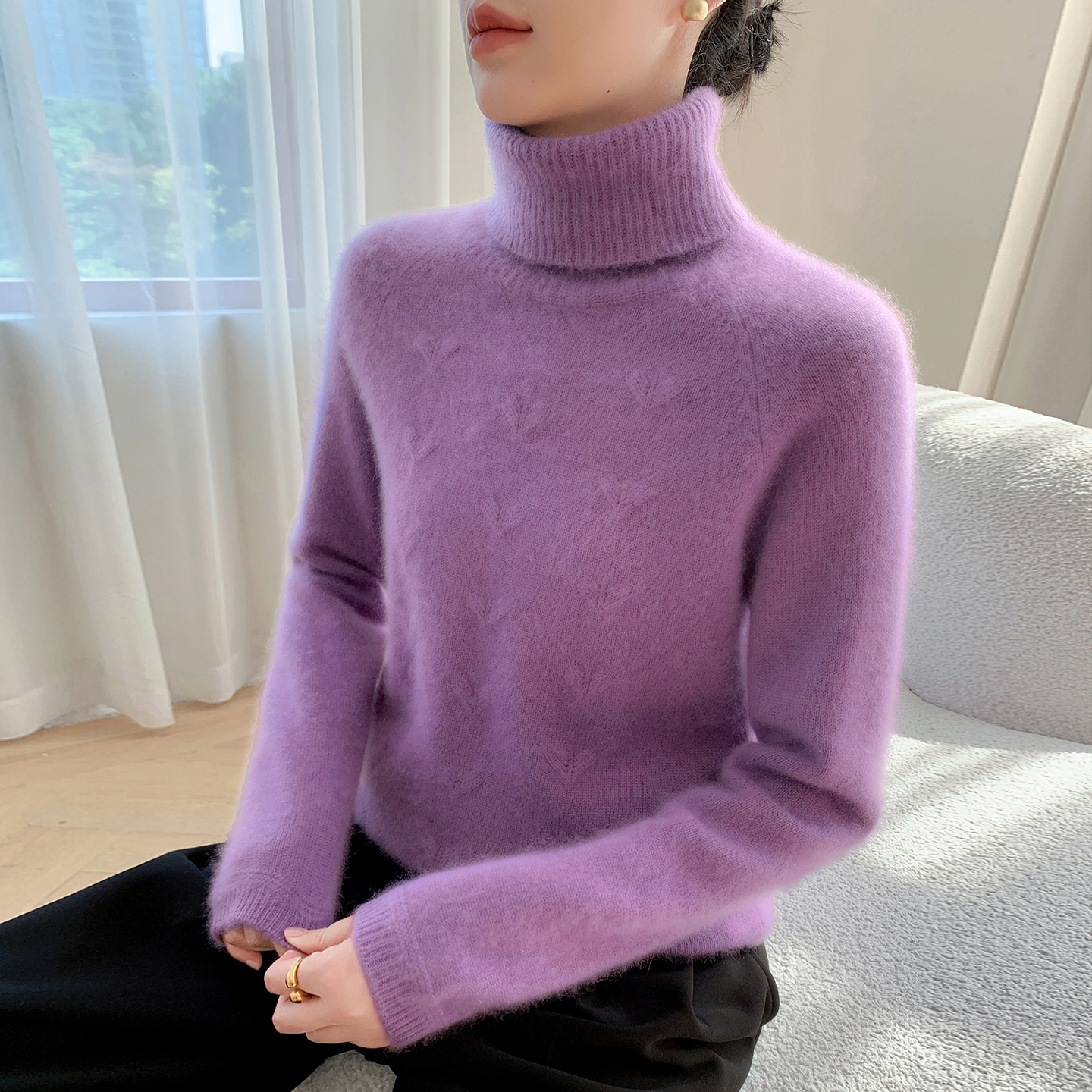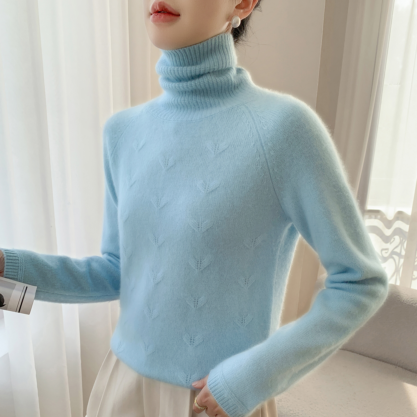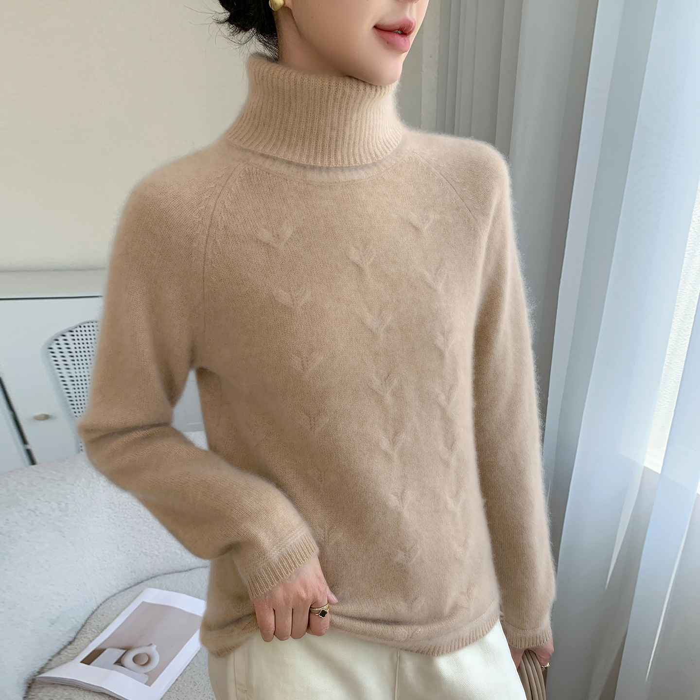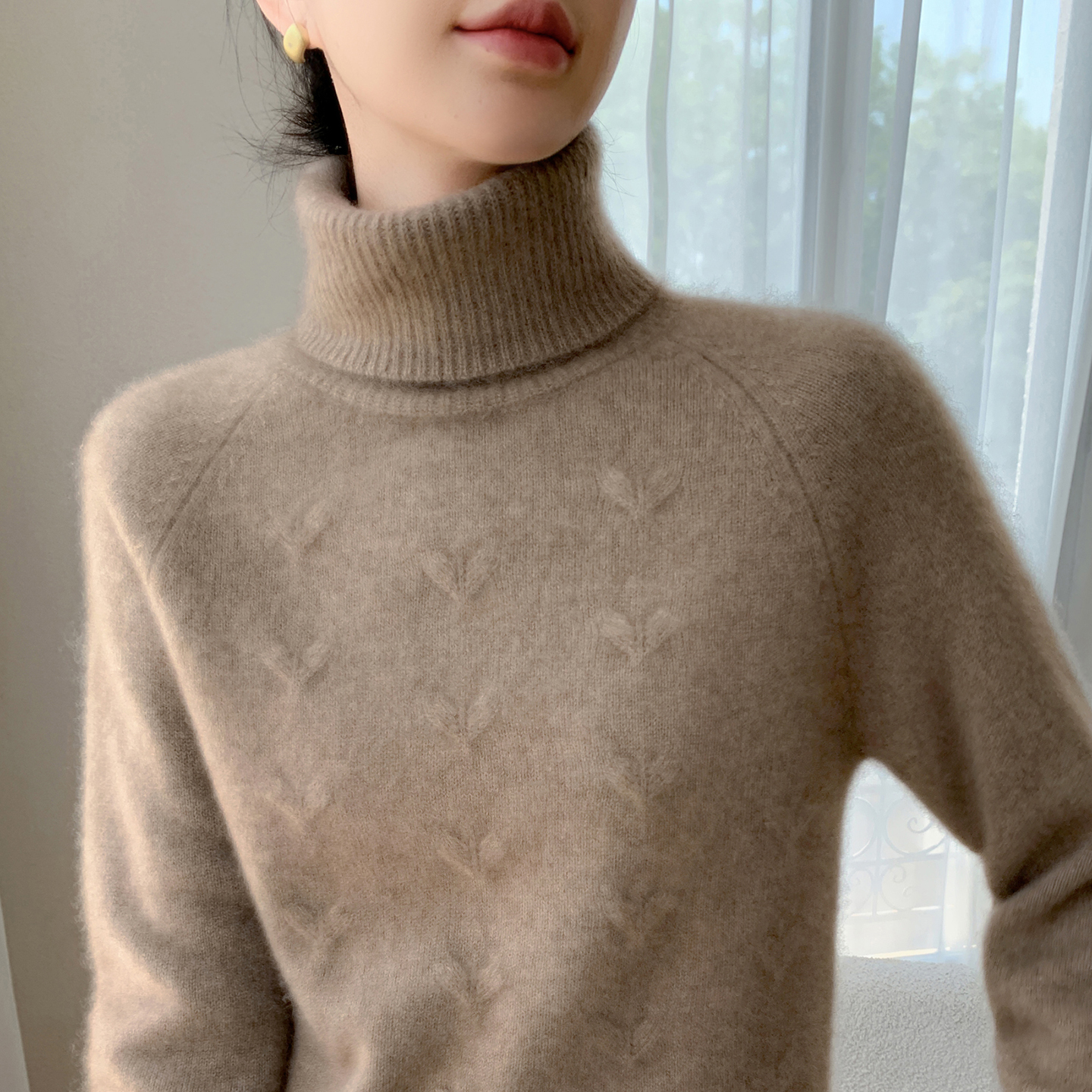 高领爱心纯羊绒针织衫女加厚高端秋冬套头毛衣100%山羊绒针织上衣