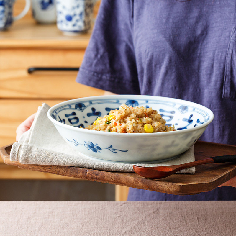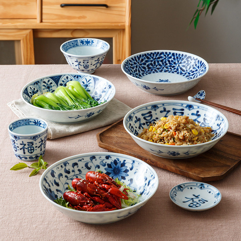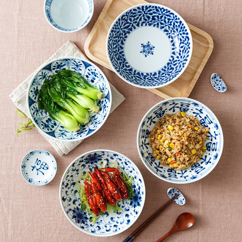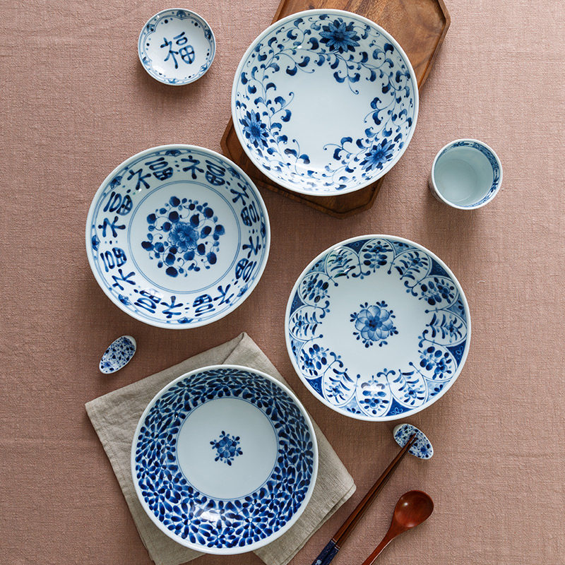陶趣居 蓝凛堂陶瓷盘子深盘 日本进口家用菜盘福字盘餐具日式汤盘