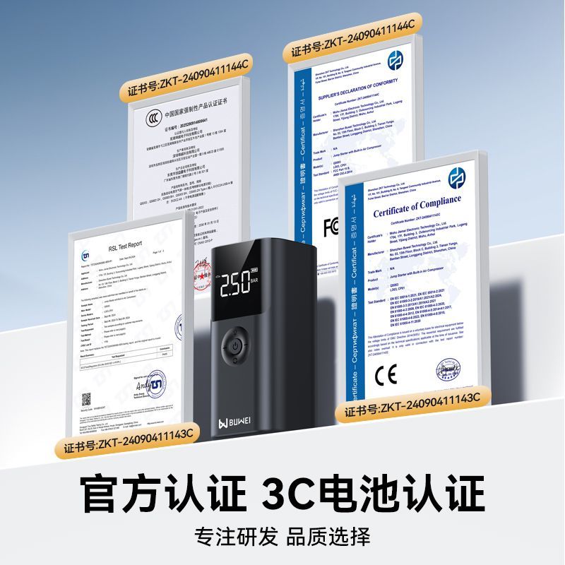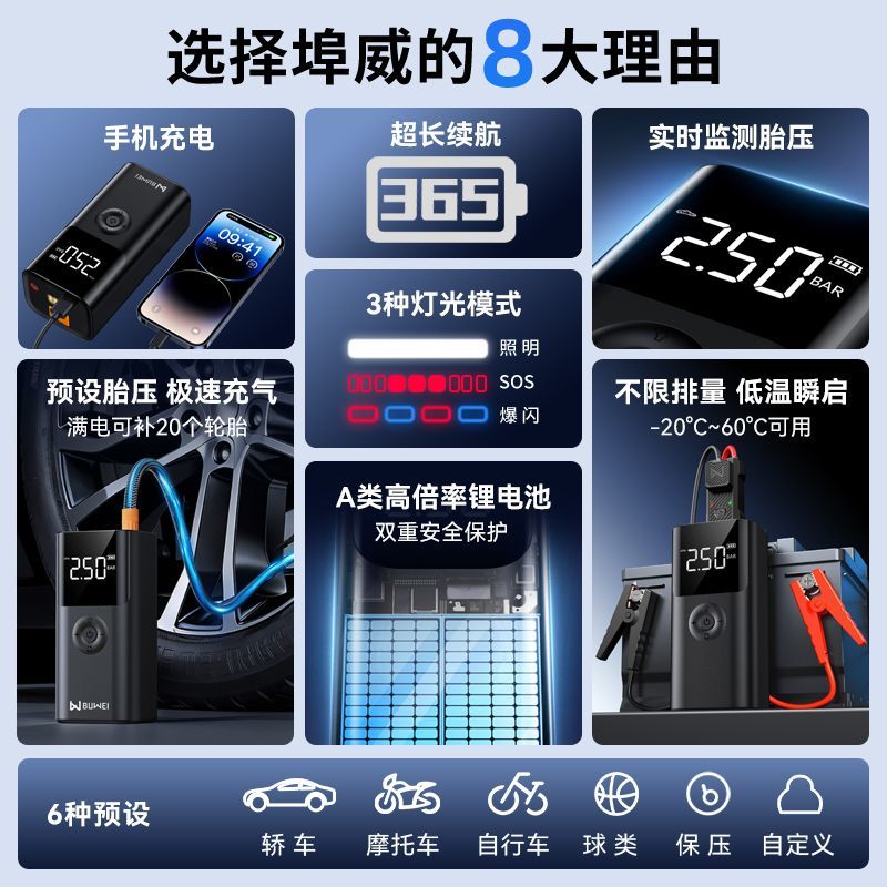 埠威BUWEI汽车应急启动电源车载充气泵多功能一体机12V强力搭电宝