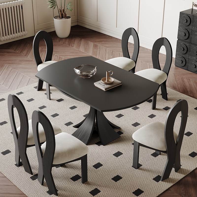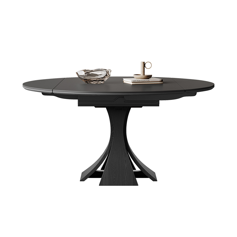 奥古斯特窈窕黑色岩板餐桌可伸缩现代简约法式复古圆形实木餐桌