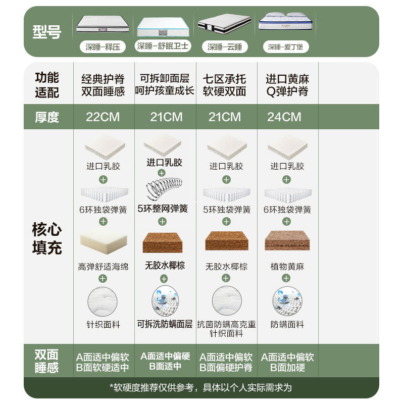 【深睡】富安娜床垫乳胶弹簧席梦思十大名牌软硬适中老人卧室家用
