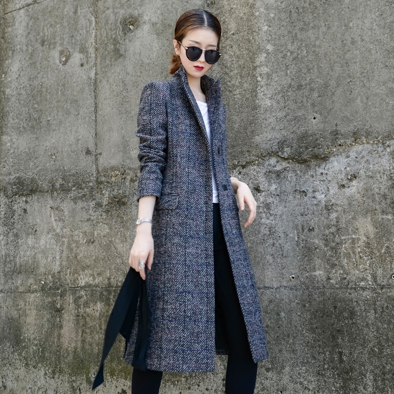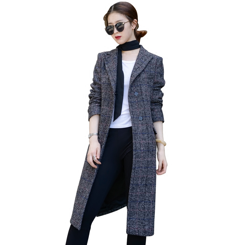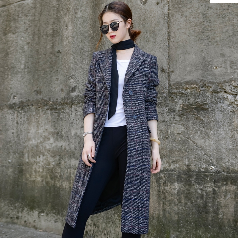 呢子大衣2024秋冬新款毛呢格子外套女中长款修身显瘦过膝呢大衣女