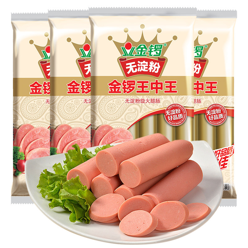 【金锣旗舰店】无淀粉王中王240g*4袋火腿肠粽子休闲办公旅游零食
