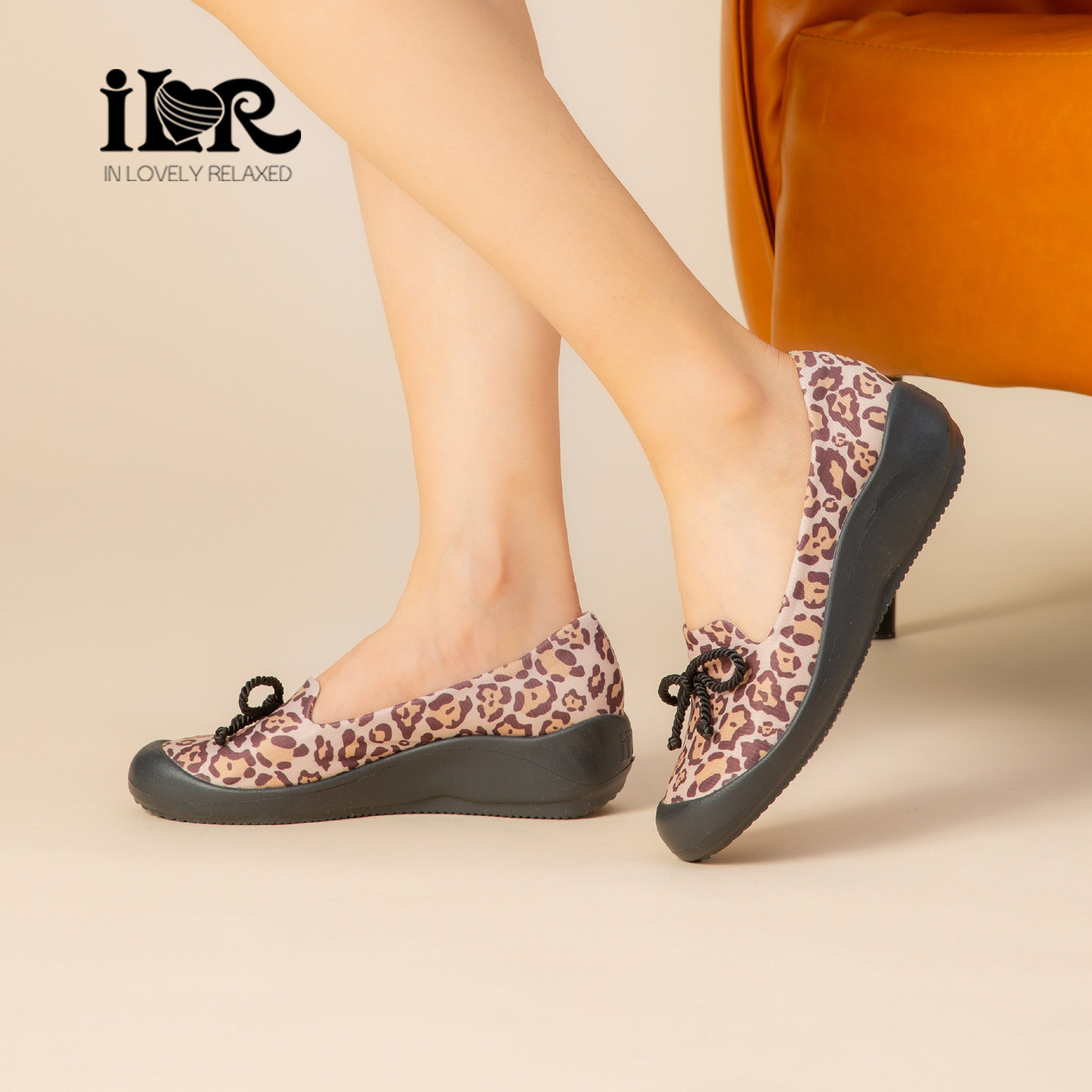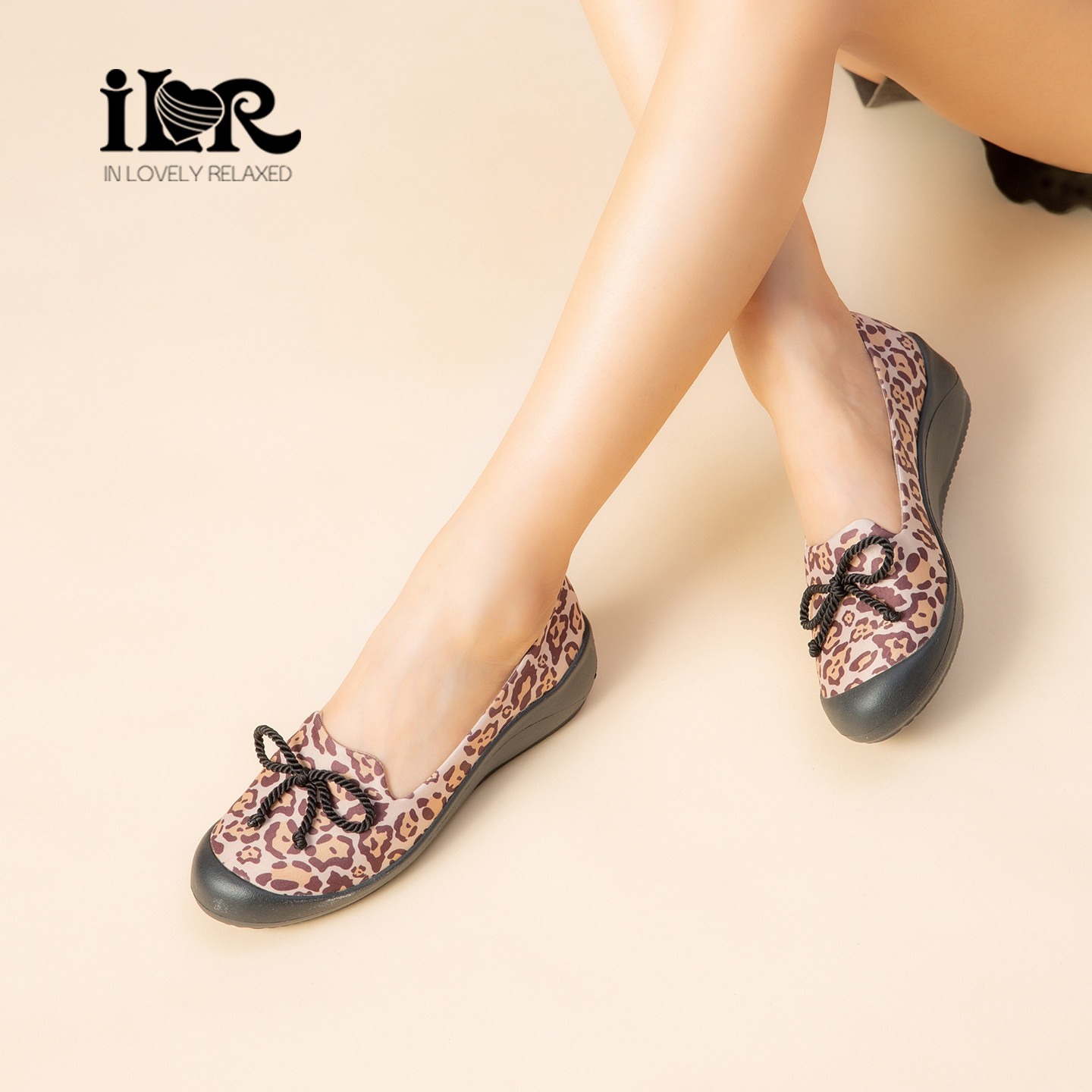 ILR因爱乐诗新款时尚豹纹蝴蝶结乐福鞋女坡跟软底一脚蹬休闲单鞋