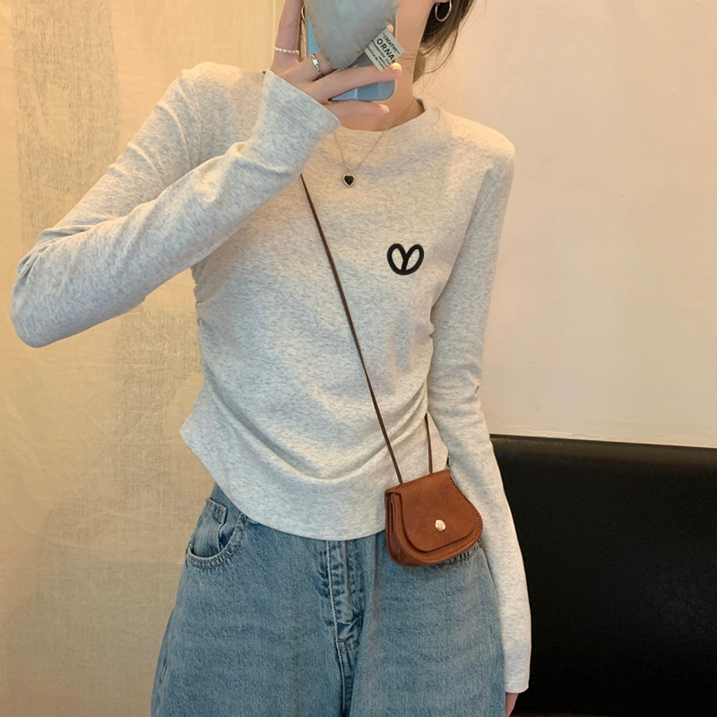 小个子短款圆领打底衫修身内搭长袖T恤女春秋韩版小众百搭上衣潮