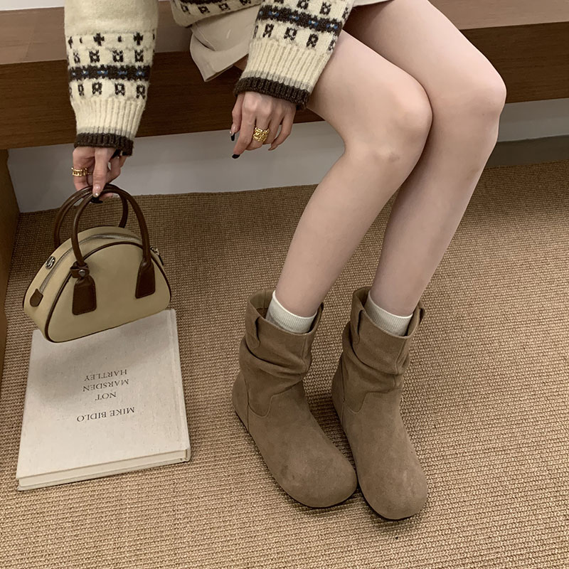 小个子秋季靴子网红复古慵懒风堆堆靴潮超火平底短靴女勃肯马丁靴