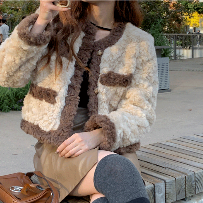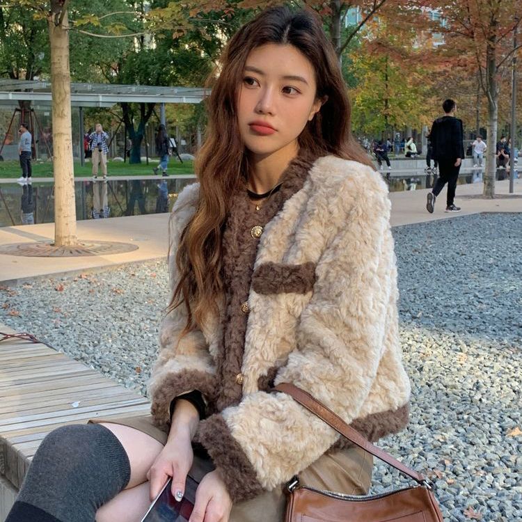 2025秋冬美拉德小香风羊羔毛外套棉衣女韩版短款羊羔绒开衫上衣潮