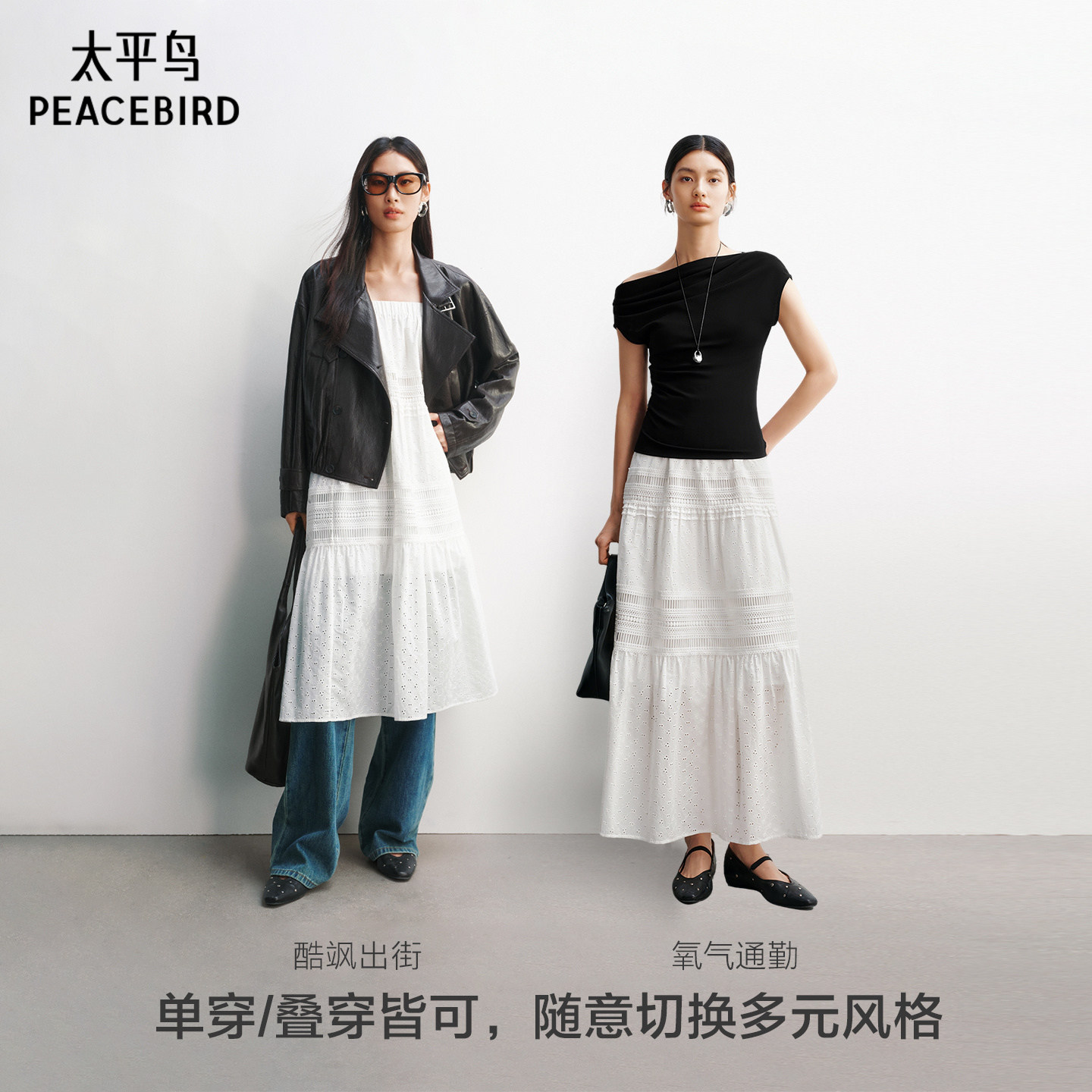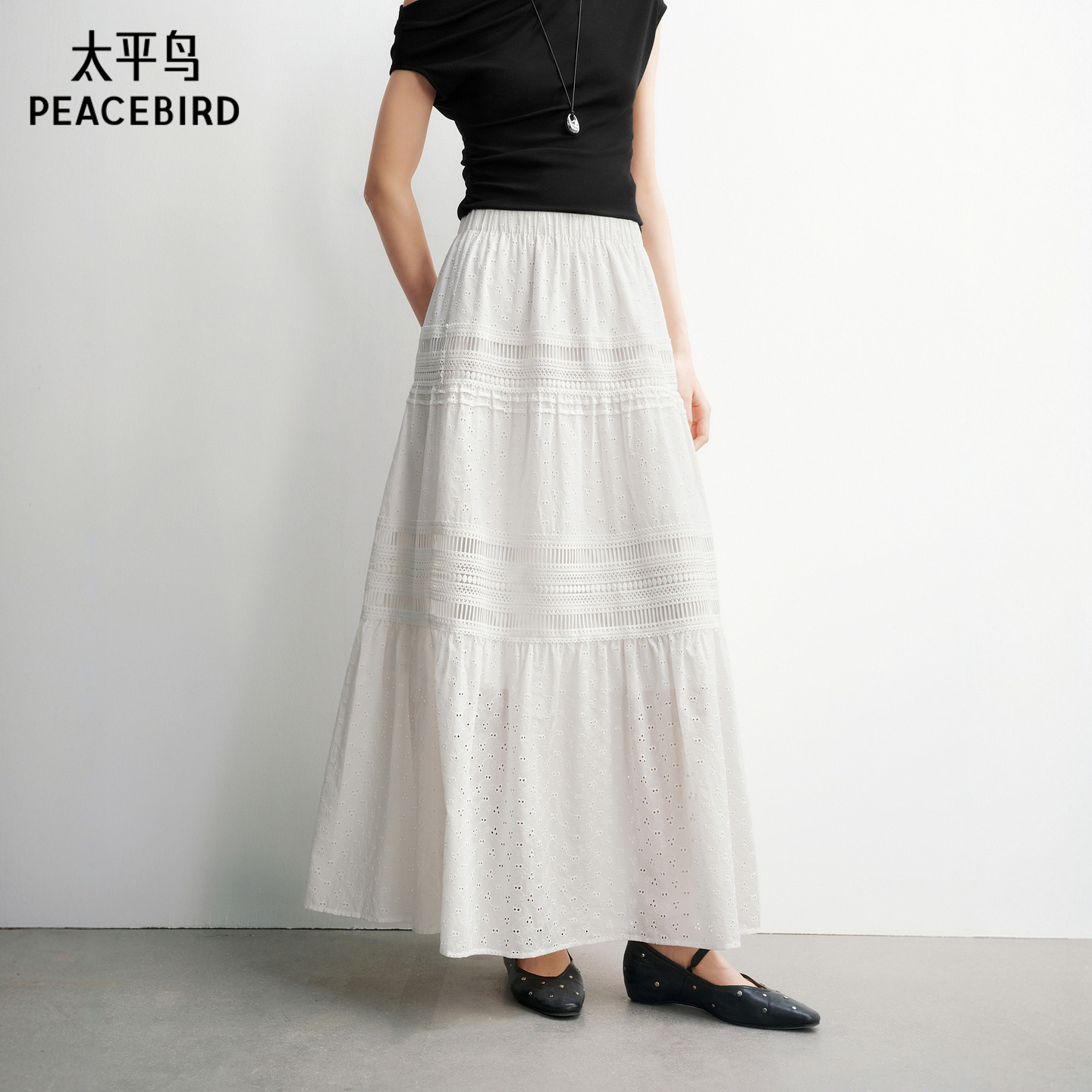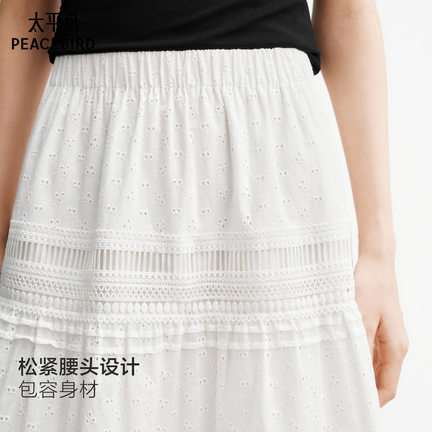 太平鸟波嬉风白色蛋糕裙半身裙女春夏新款品质好看高级感中长裙