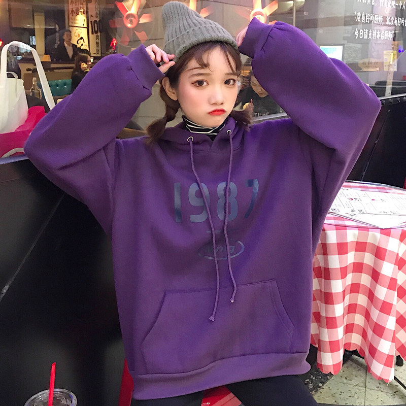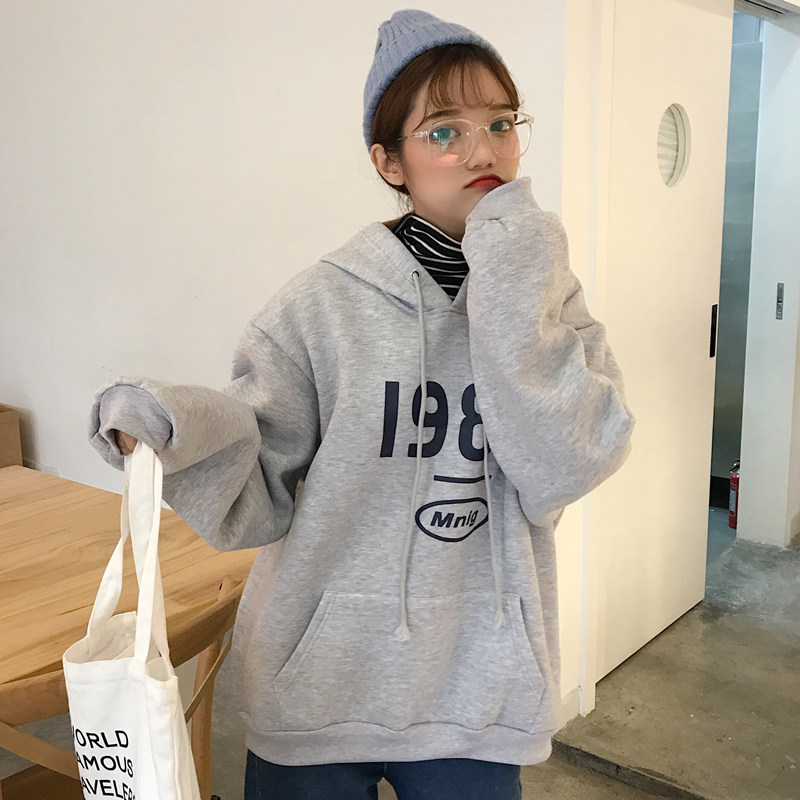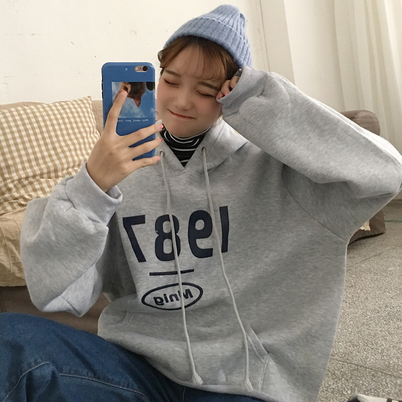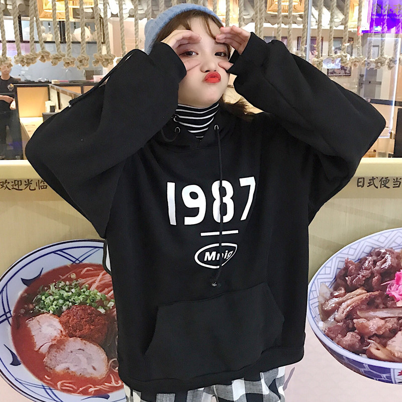 韩版ulzzang宽松原宿风bf加绒连帽卫衣女长袖学生ins超火的外套潮