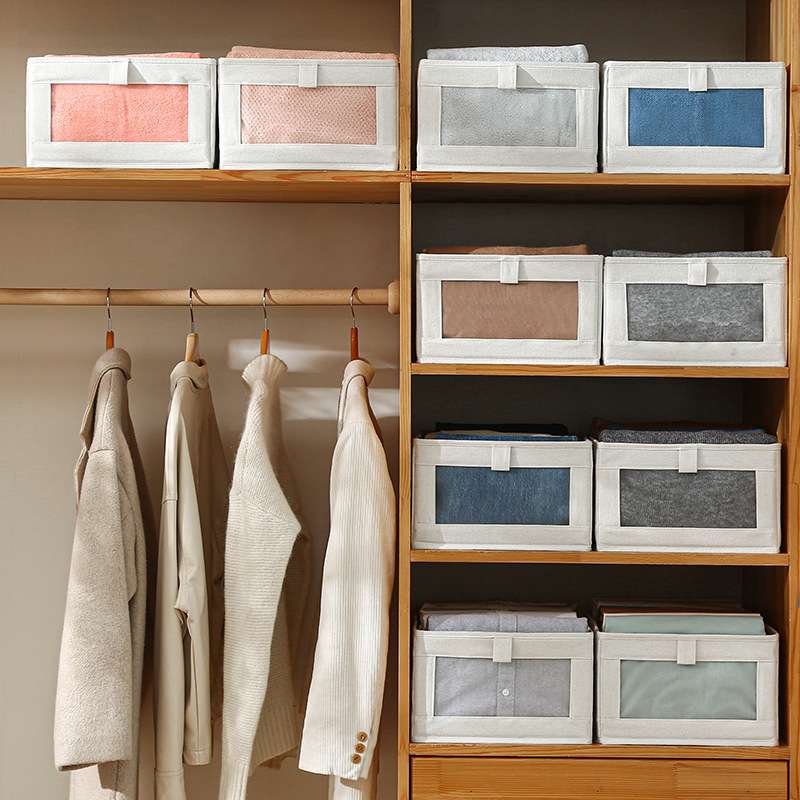 安琴棉麻网纱收纳盒折叠宿舍衣柜抽屉式储物盒可视衣物裤收纳盒