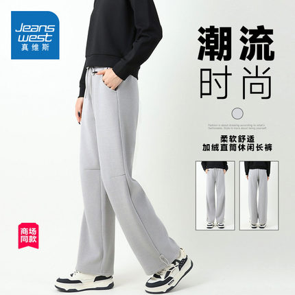 【商场同款】真维斯女装2025冬季新款宽松百搭加绒直筒休闲长裤