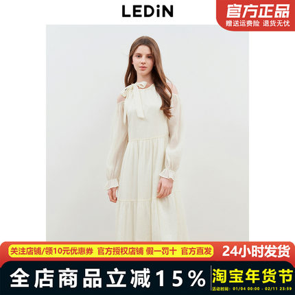 乐町少女感露肩雪纺长裙女25年春季新款宽松仙女裙挂脖长袖连衣裙