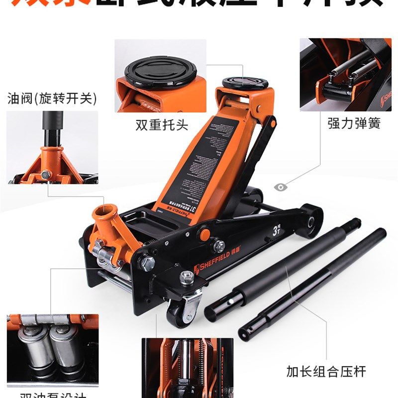 钢盾卧式千斤顶2吨汽小轿车用越野车SUV液压千金顶3t省力换胎工具