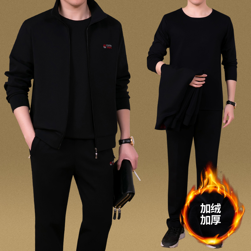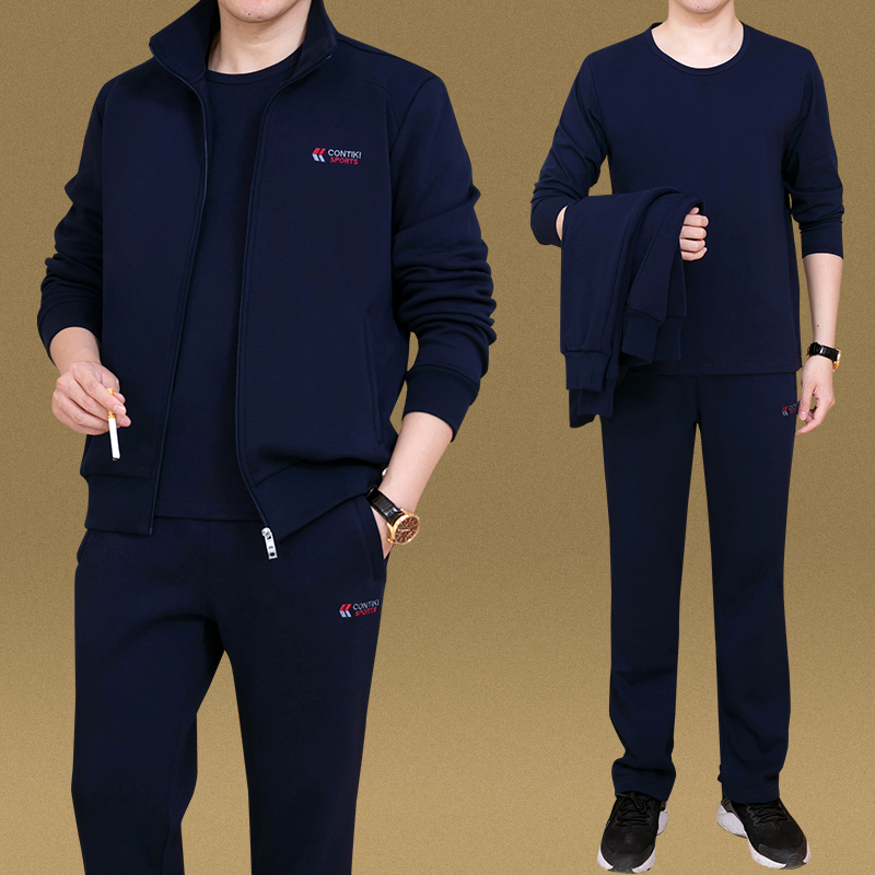 秋冬品牌男士运动套装卫衣中老年运动服爸爸装加绒加厚三件套纯棉