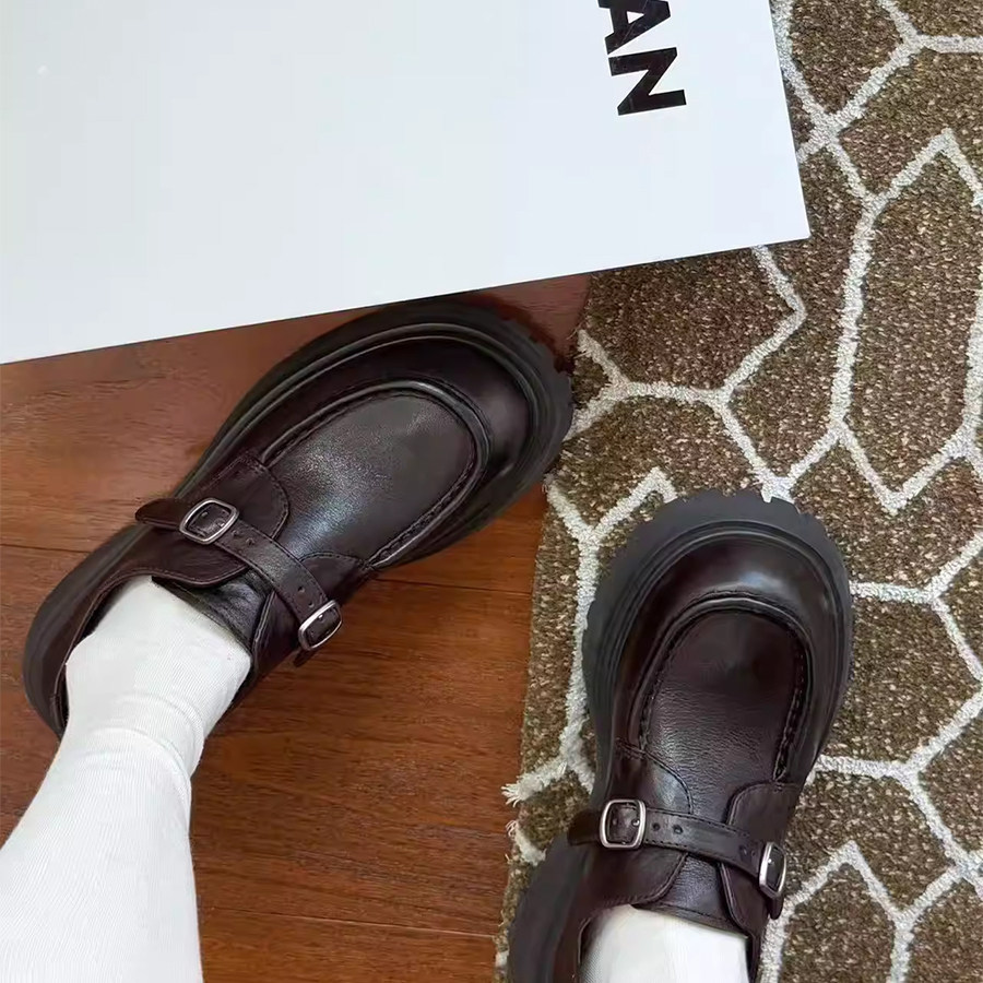 诗歌兰女鞋2026早春新款英伦风搭扣乐福鞋厚底圆头老钱风小皮鞋潮