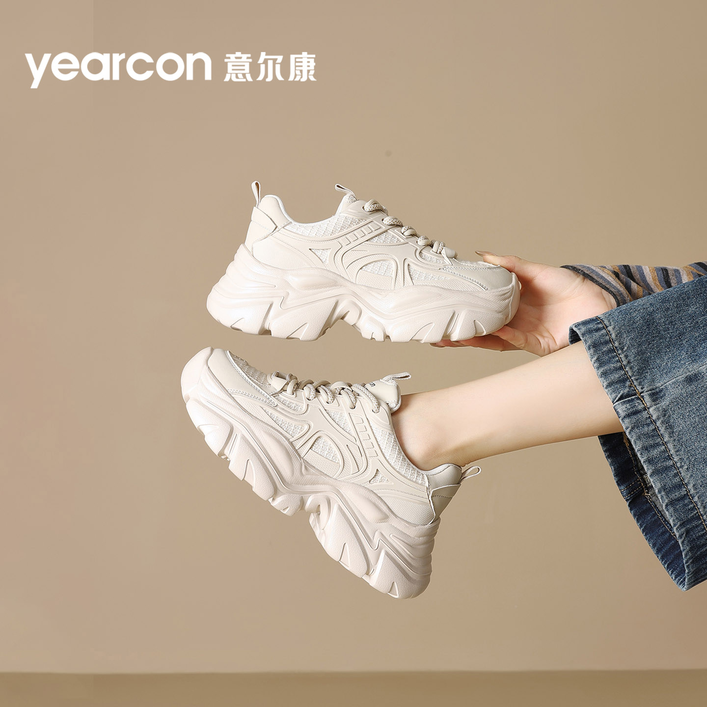 意尔康女鞋2026年新款春季休闲鞋女士百搭超火爆款厚底增高老爹鞋