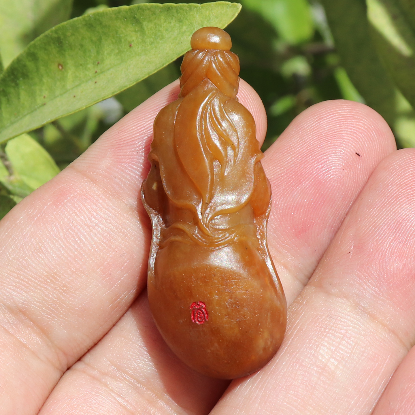 火爆方言和田玉罕见新疆原生栗子黄全玉种黄玉籽料观音吊坠挂件N