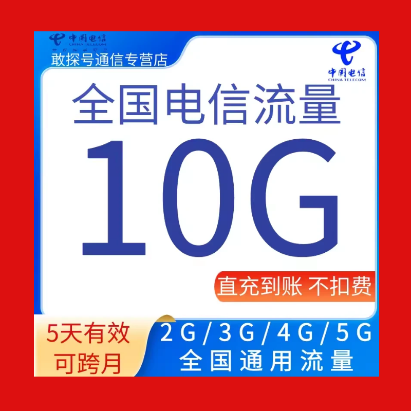 全国电信流量充值10GB流量加油叠加包2345G全国通用流量 5天有效