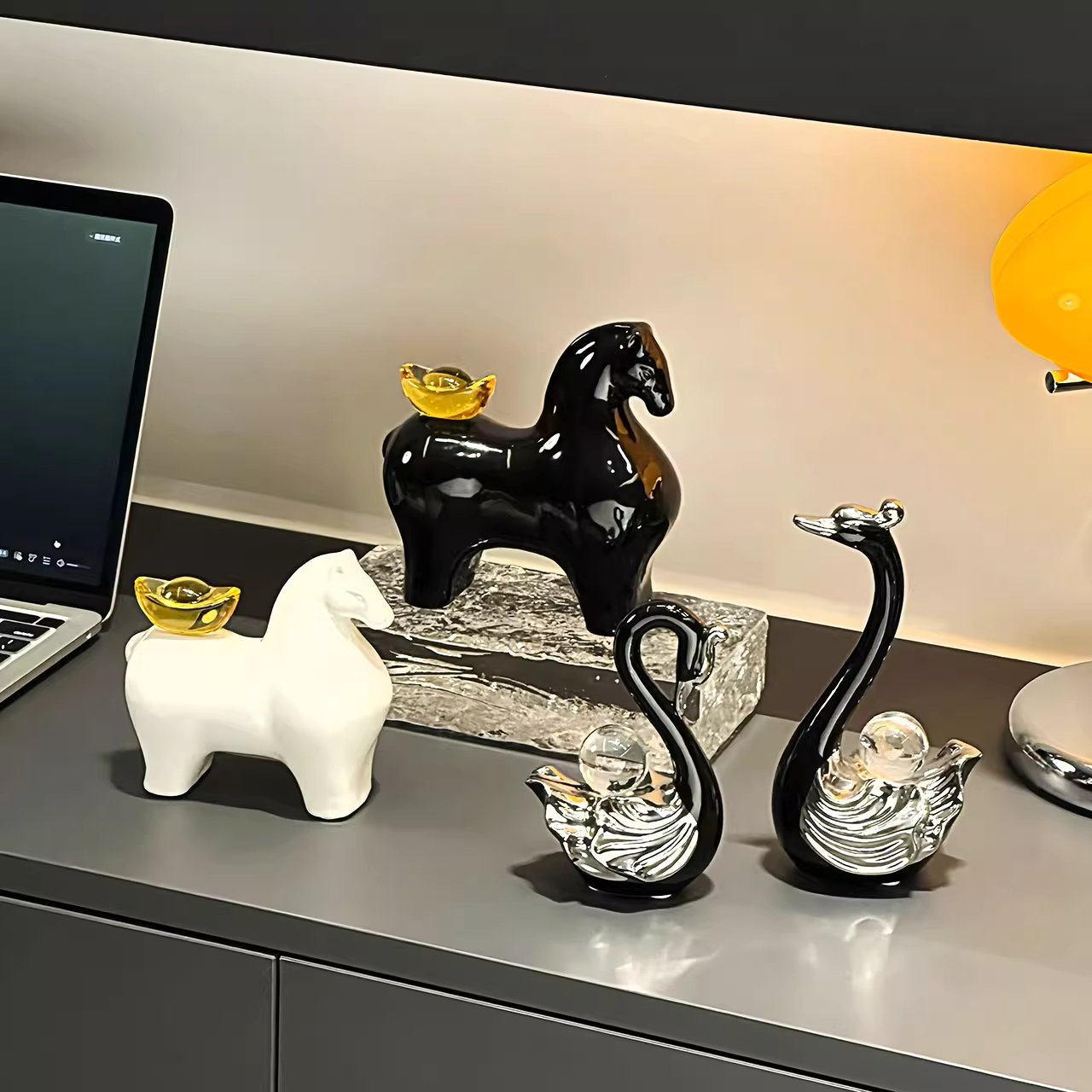 现代简约马上有钱摆件招财客厅酒柜轻奢高档高级感装饰品开业礼物