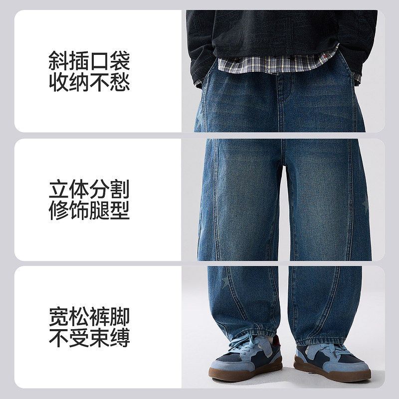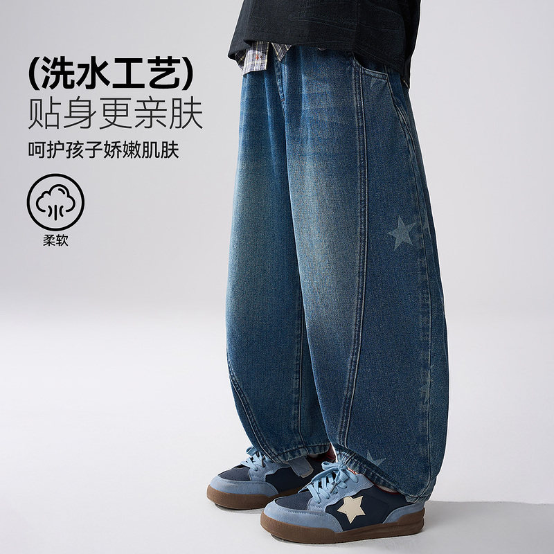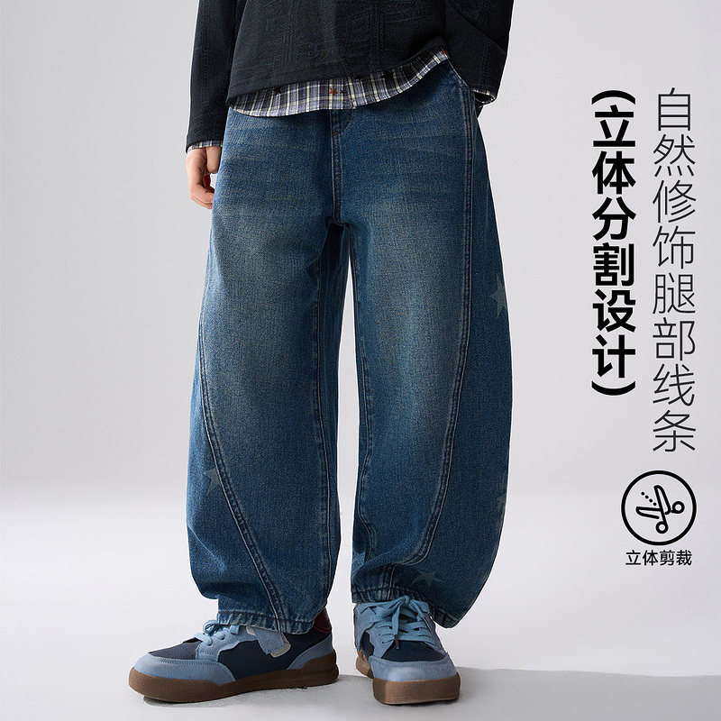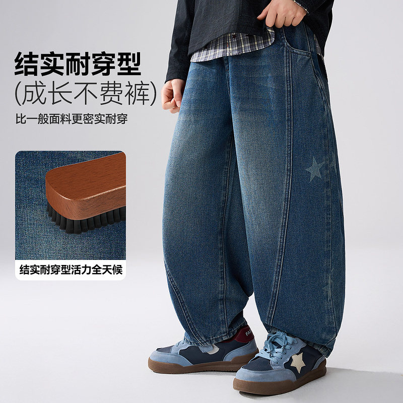 ask儿童弯刀牛仔裤2026春季新款男童宽松裤子中大童休闲长裤