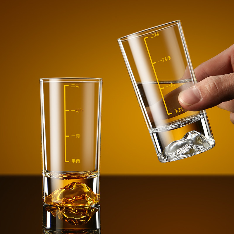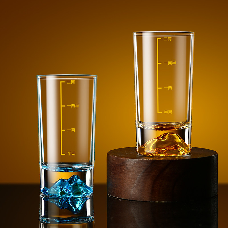 创意金山二两白酒杯套装家用水晶玻璃带刻度冰山蓝山高档轻奢酒具