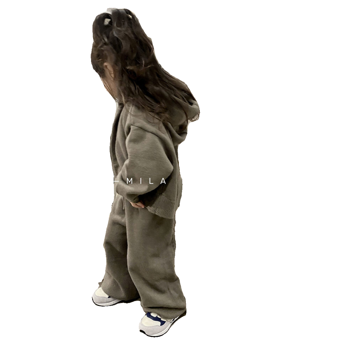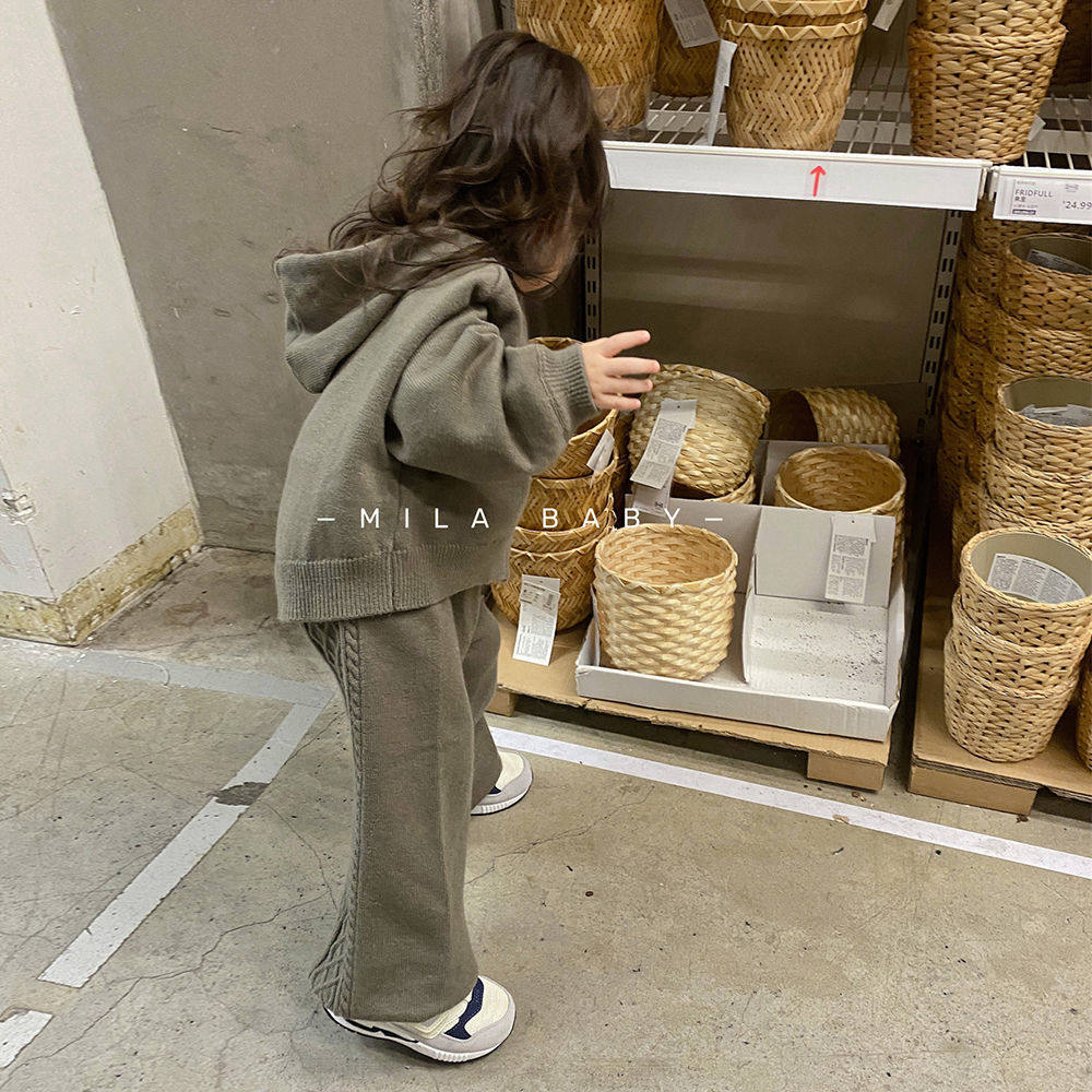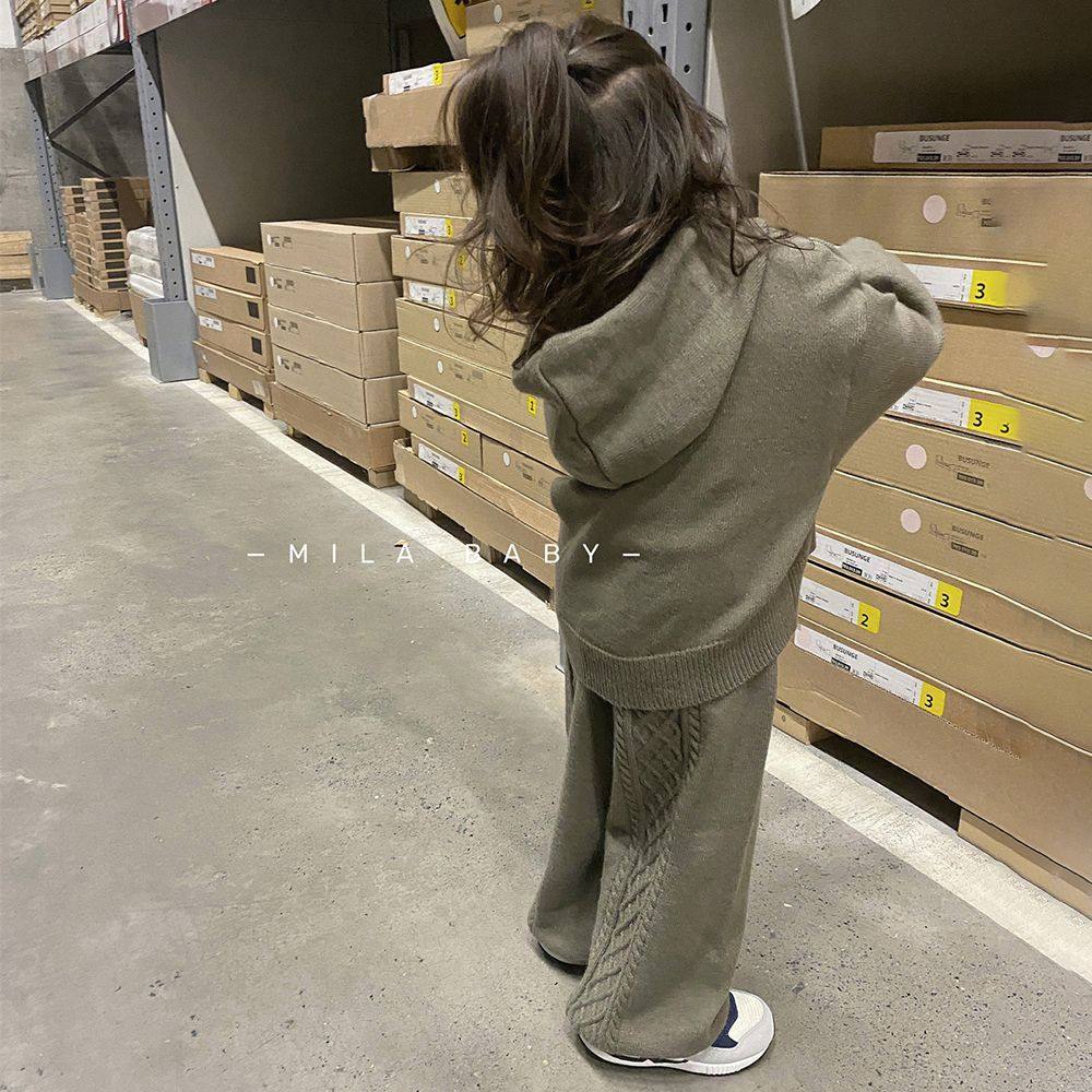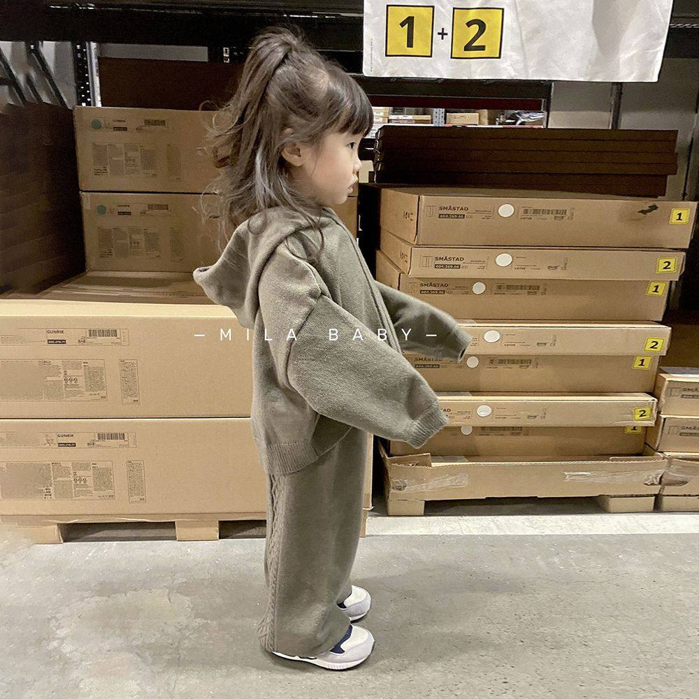 韩版女童2025秋冬新款咖色针织连帽拉链毛衣儿童洋气上衣阔腿裤子