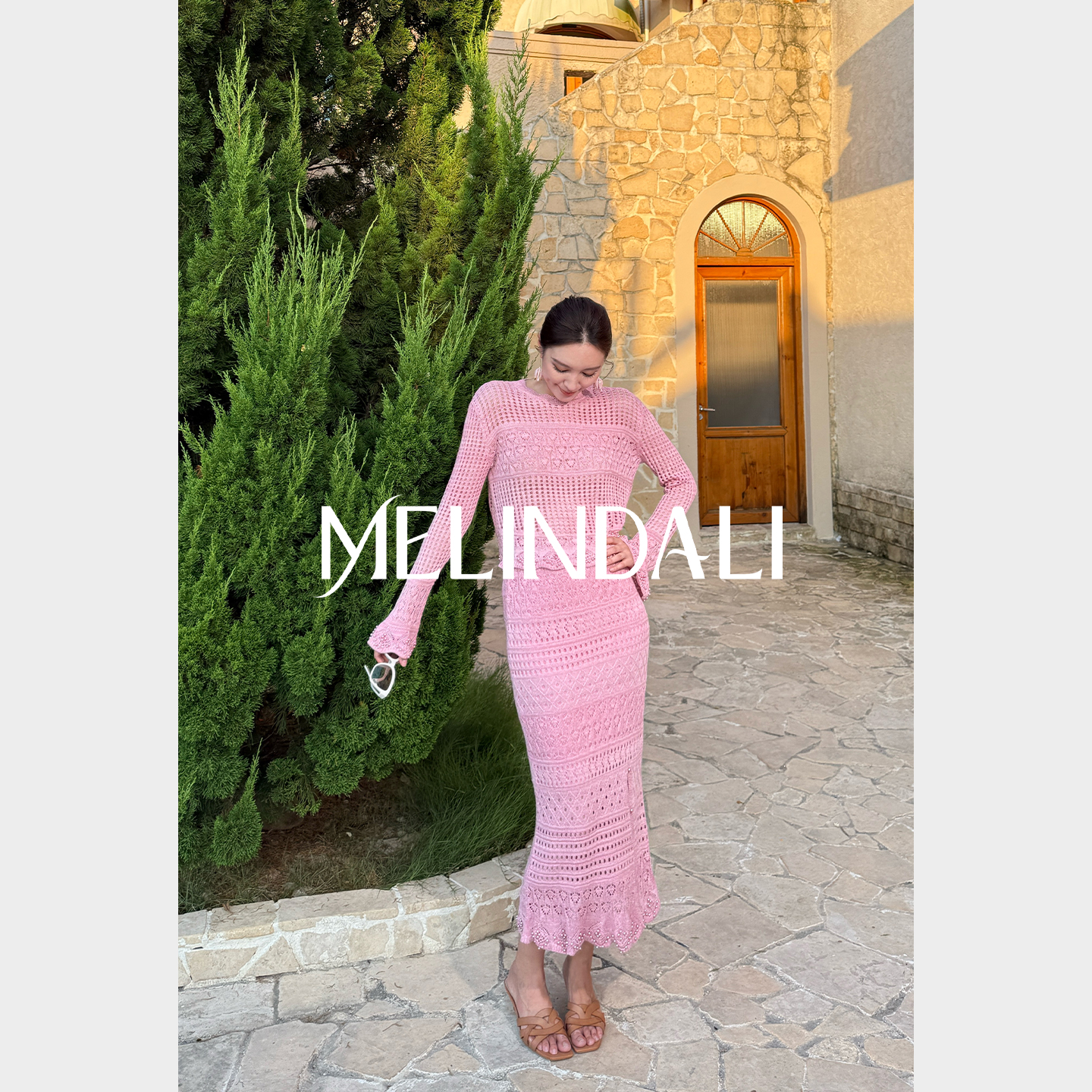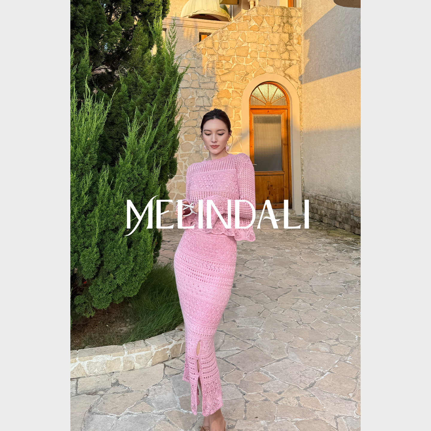 MELINDA LI【澳白针织套】法式度假风镂空珍珠装饰针织毛衣套装