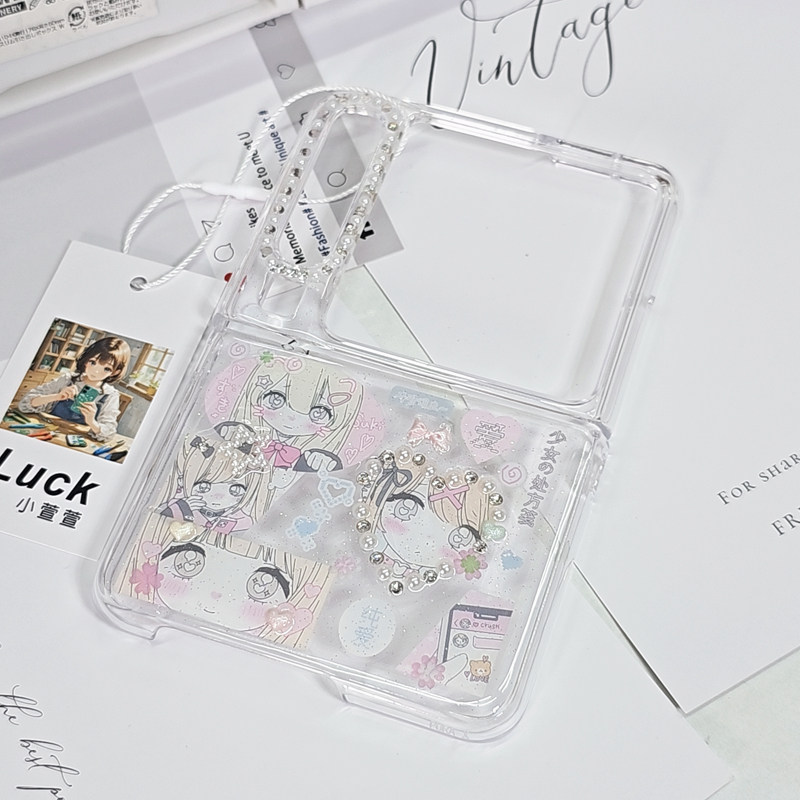 可爱电波少女三星zflip6/5小折叠手机壳oppoN3华为puraX/nova滴胶vivoX摩托罗拉razr60小米mix努比亚flip2