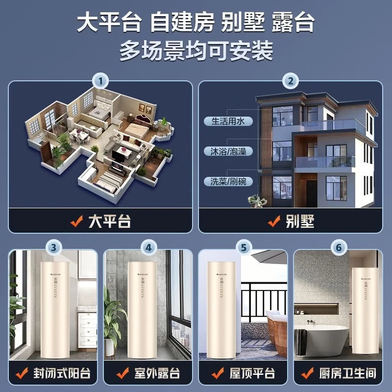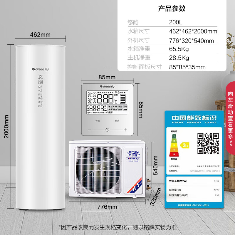格力悠韵空气能热水器 200L 水电分离 节能省电 全胆恒温