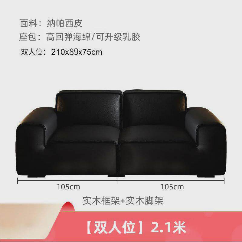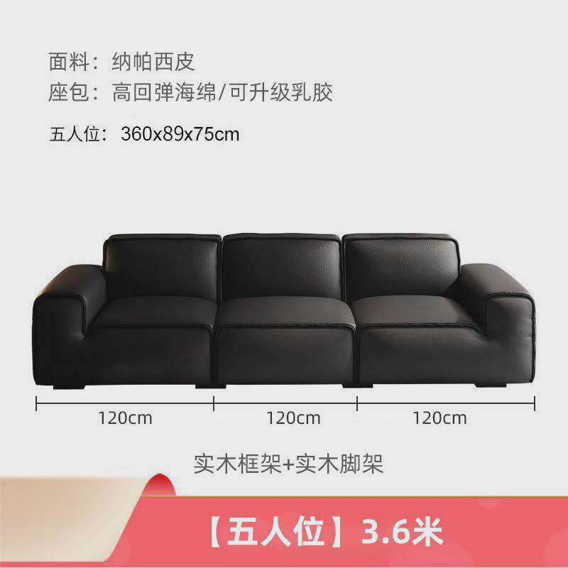 bkk皮艺沙发法式意式直排沙发现代简约客厅大黑牛黑色豆腐块皮质