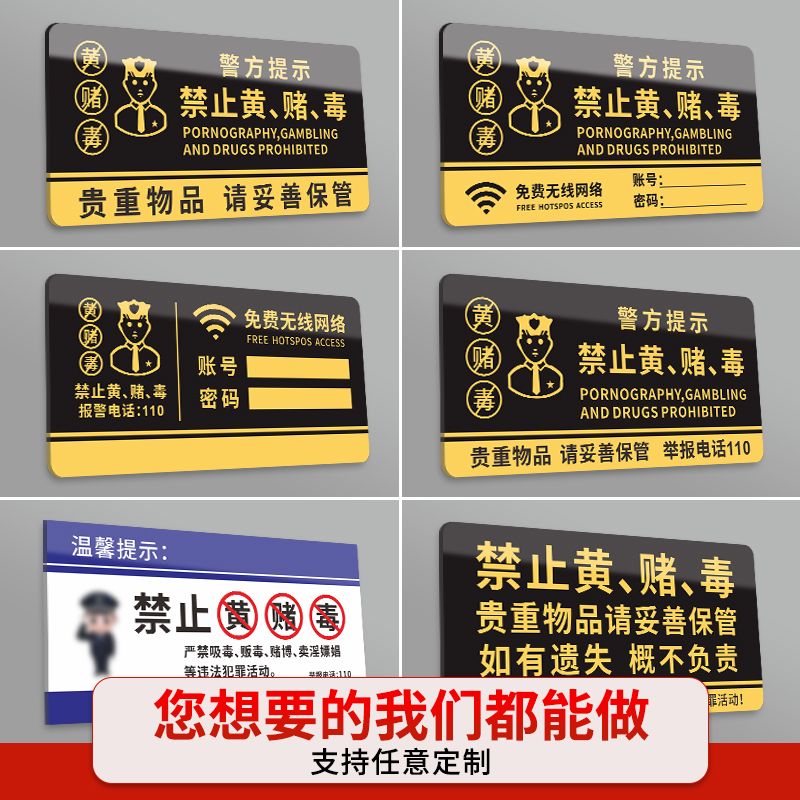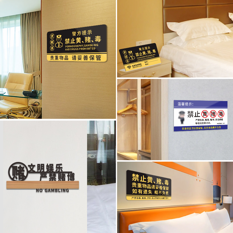 酒店禁止黄赌毒标识标牌创意定制亚克力棋牌室休闲娱乐赌博酒店三禁警示牌客房宾馆KTV酒吧标识指示牌墙贴纸