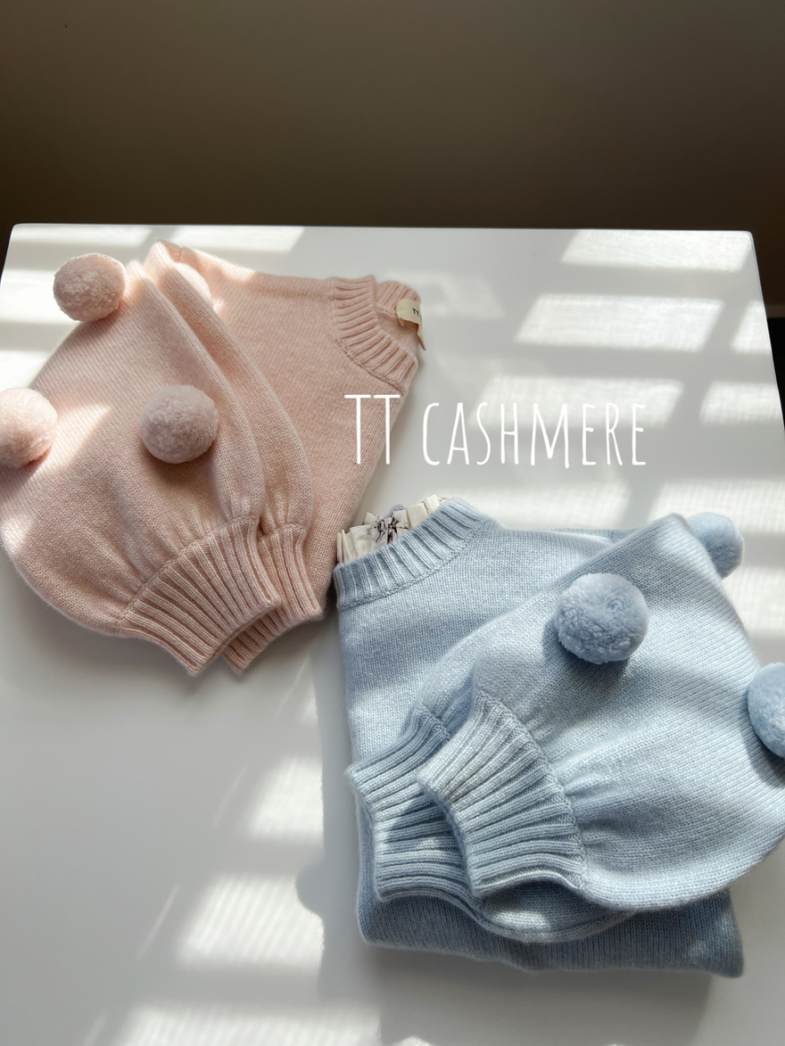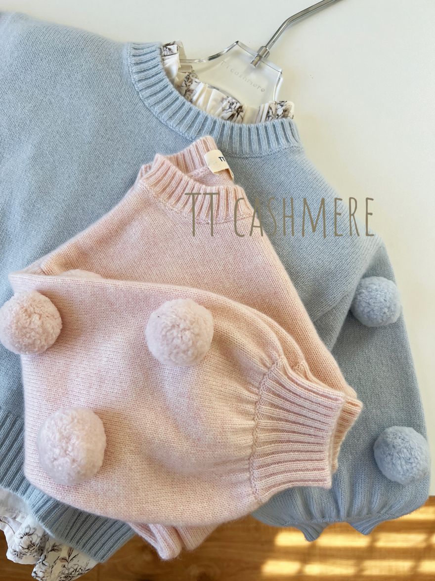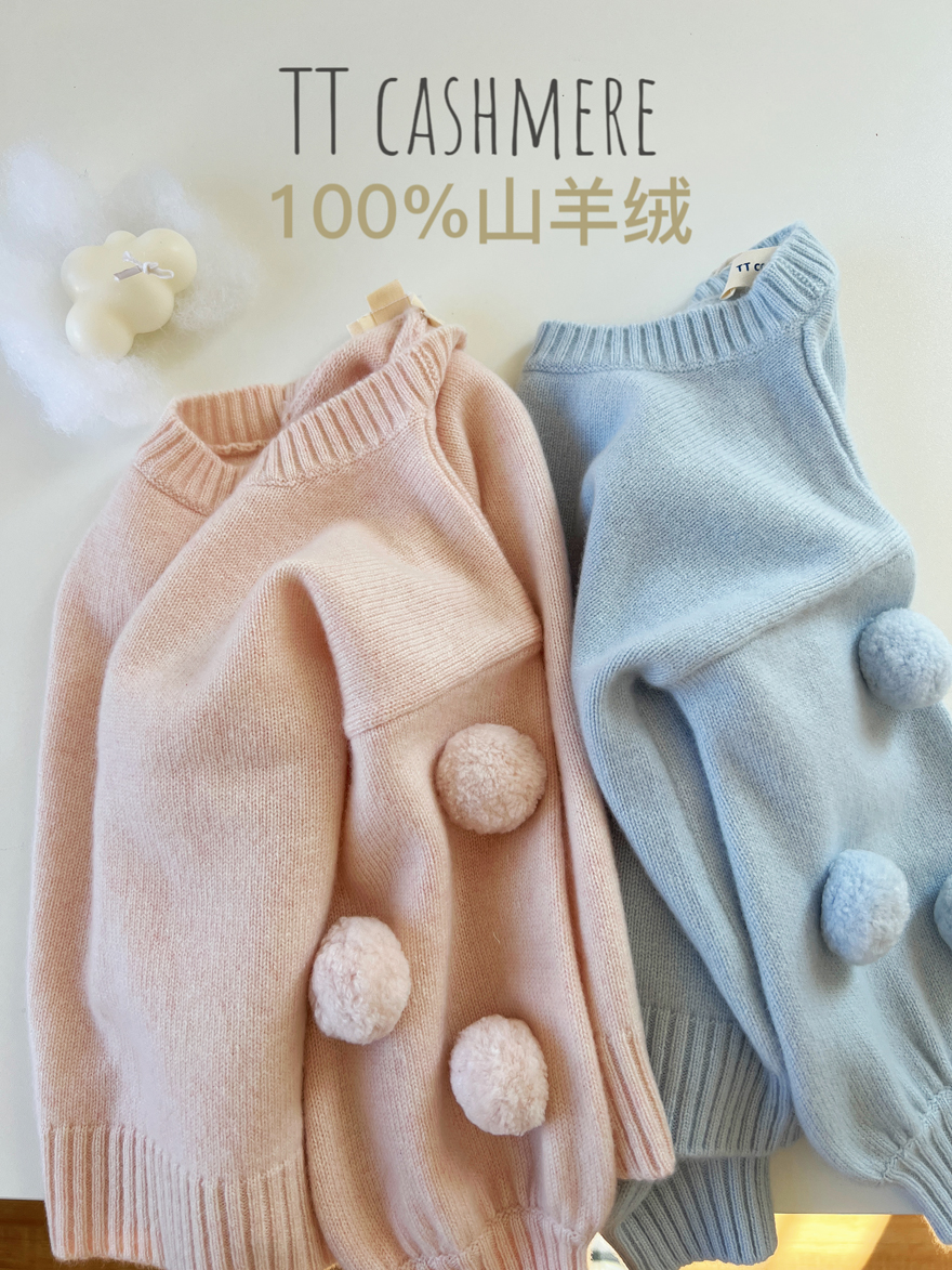 TTcashmere新款康赛妮欧诺啦可爱毛球女童100%山羊绒圆领毛衣