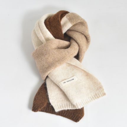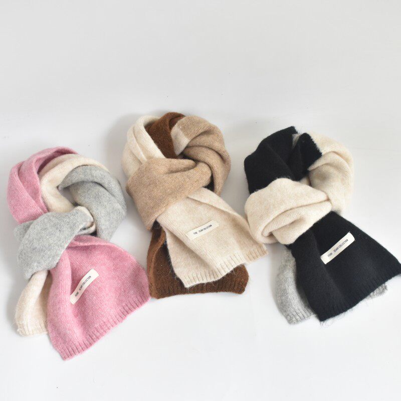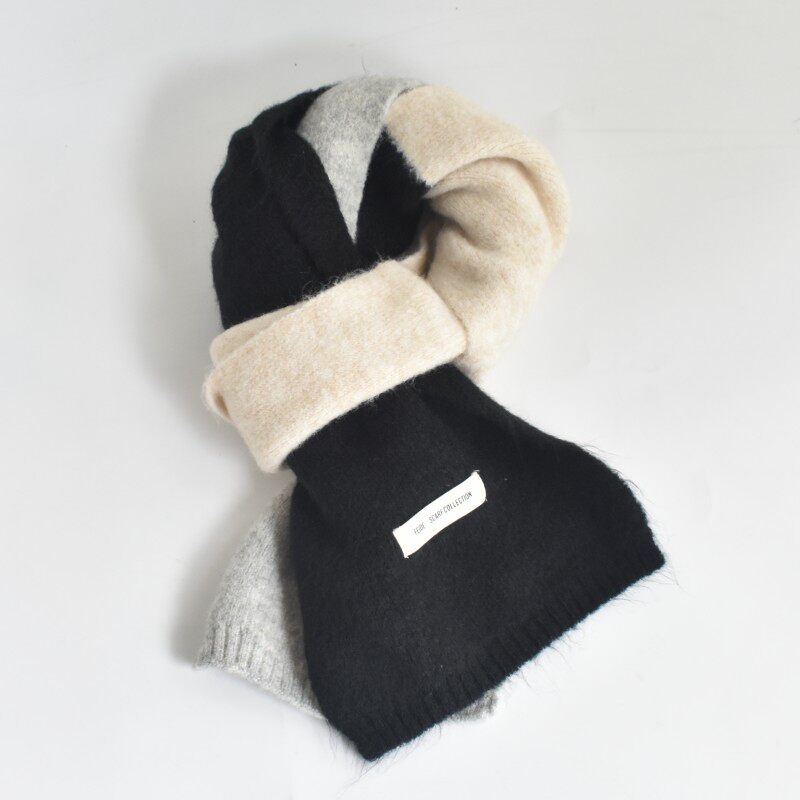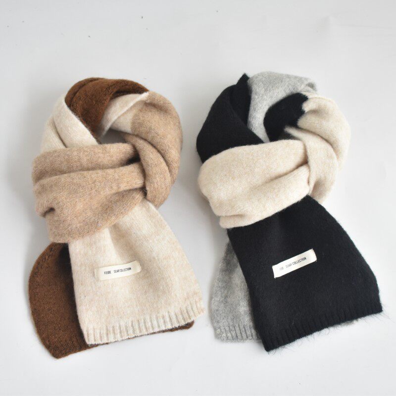 新款撞色小围巾女秋冬季韩版百搭显白毛线拼色冬天护颈情侣围脖潮