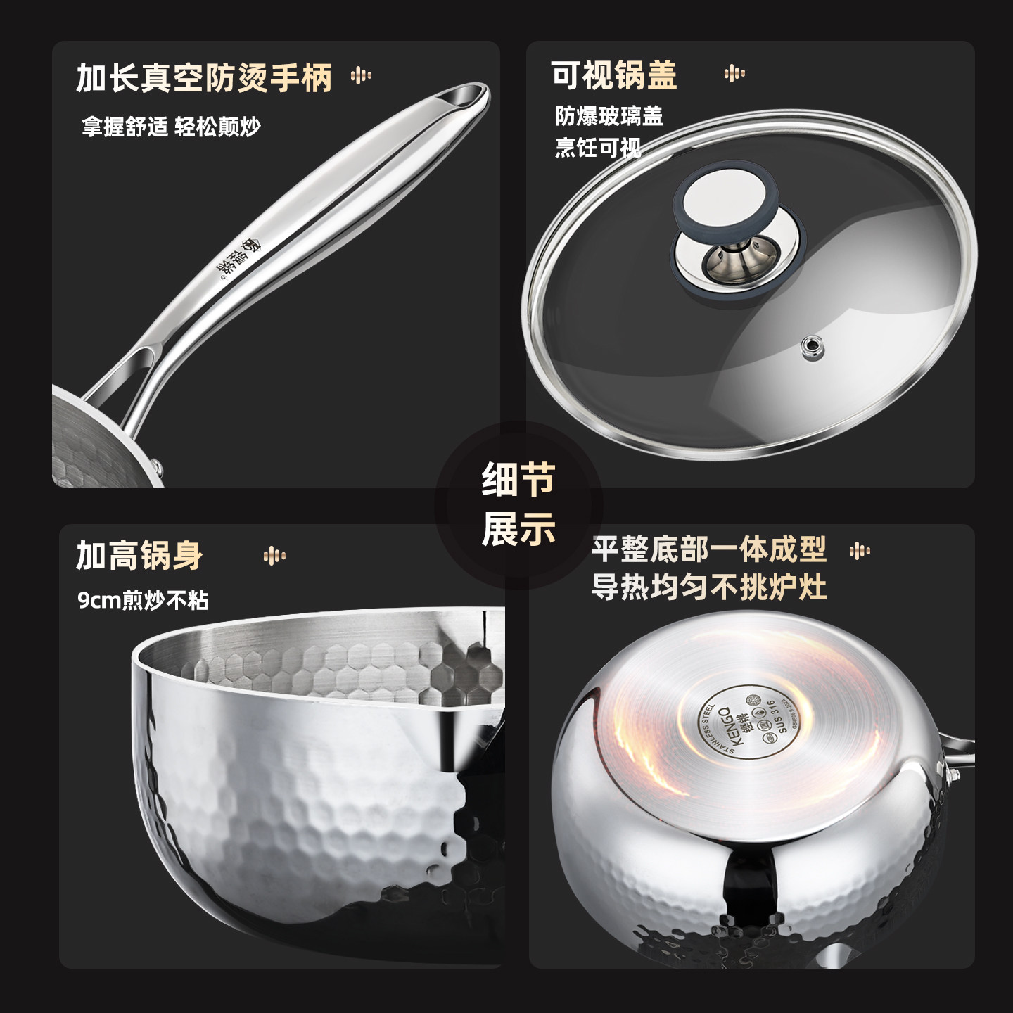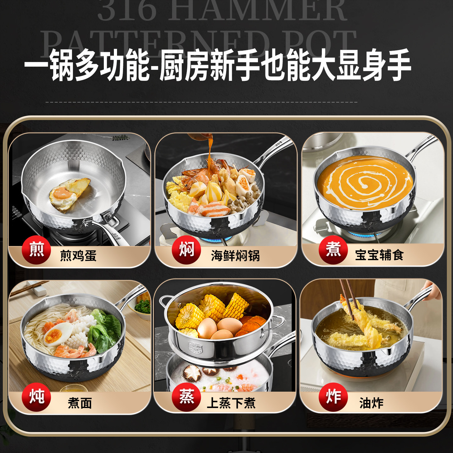 铿锵雪平锅316不锈钢家用第二代无涂层不粘宝宝辅食小奶锅煮汤锅