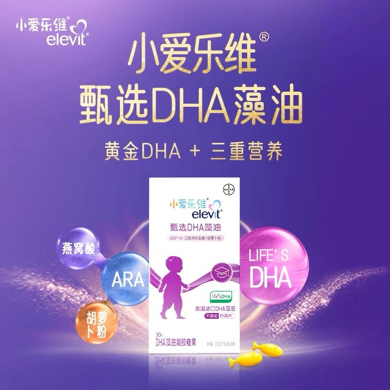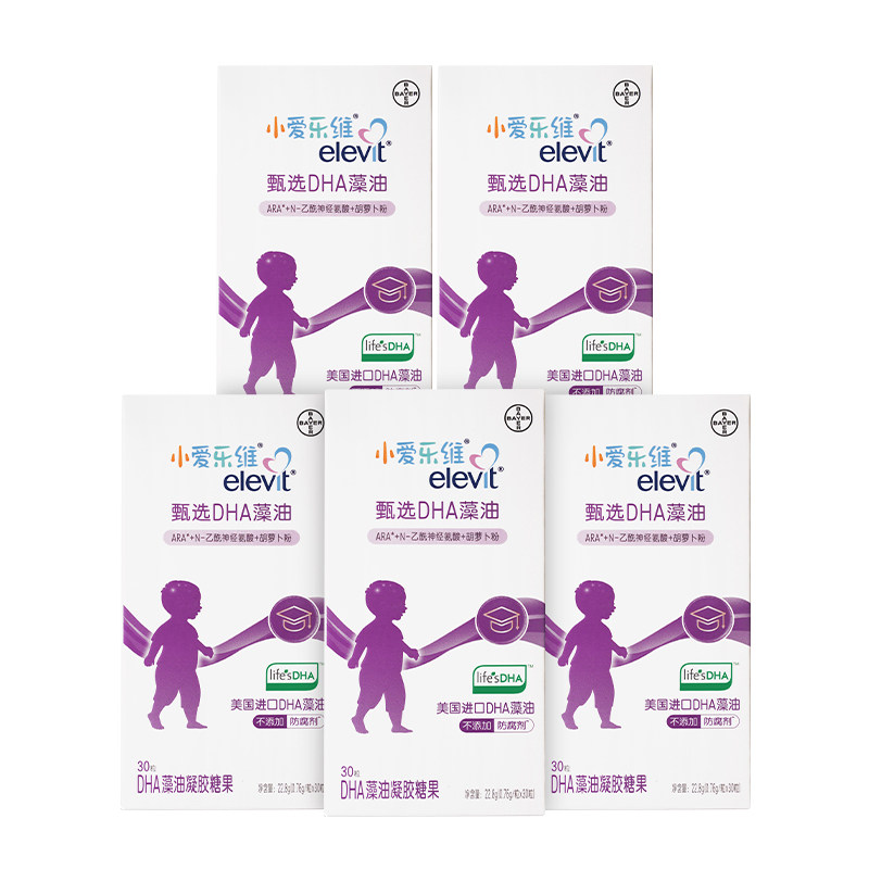 拜耳Elevit小爱乐维婴幼儿宝宝专用DHA藻油凝胶糖果30粒*5盒DHA