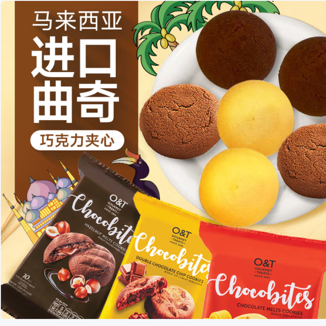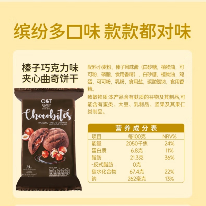 特惠3袋临期O&T马来西亚进口榛子酱巧克力味夹心曲奇120g软曲奇
