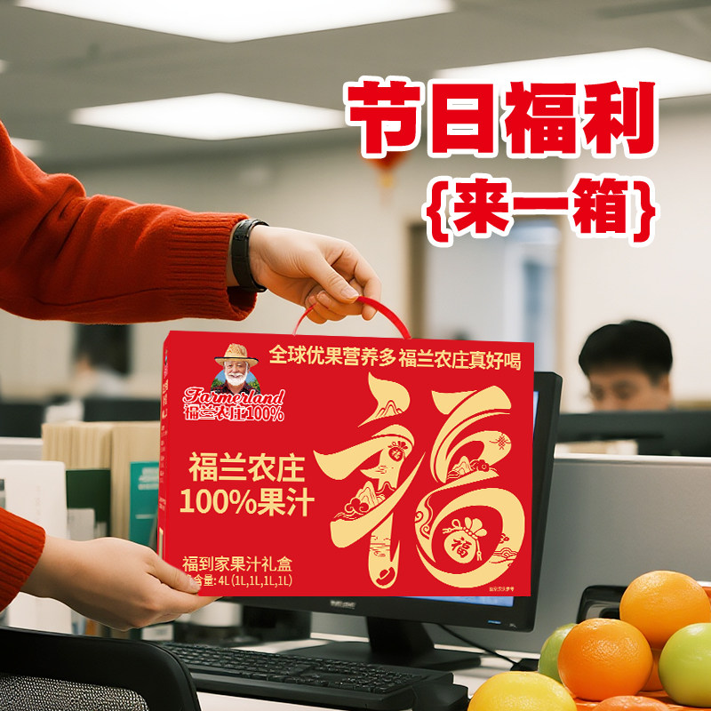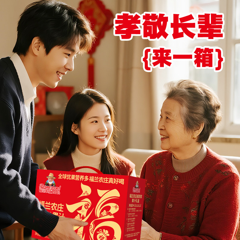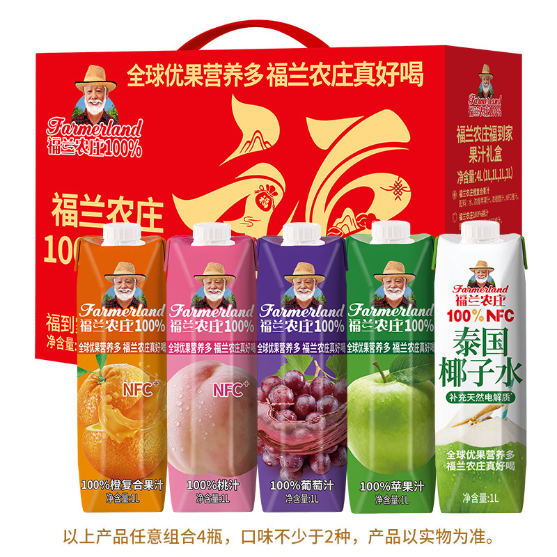 福兰农庄百分百果汁混合1L*4橙葡萄苹果饮料年货礼盒官方旗舰店