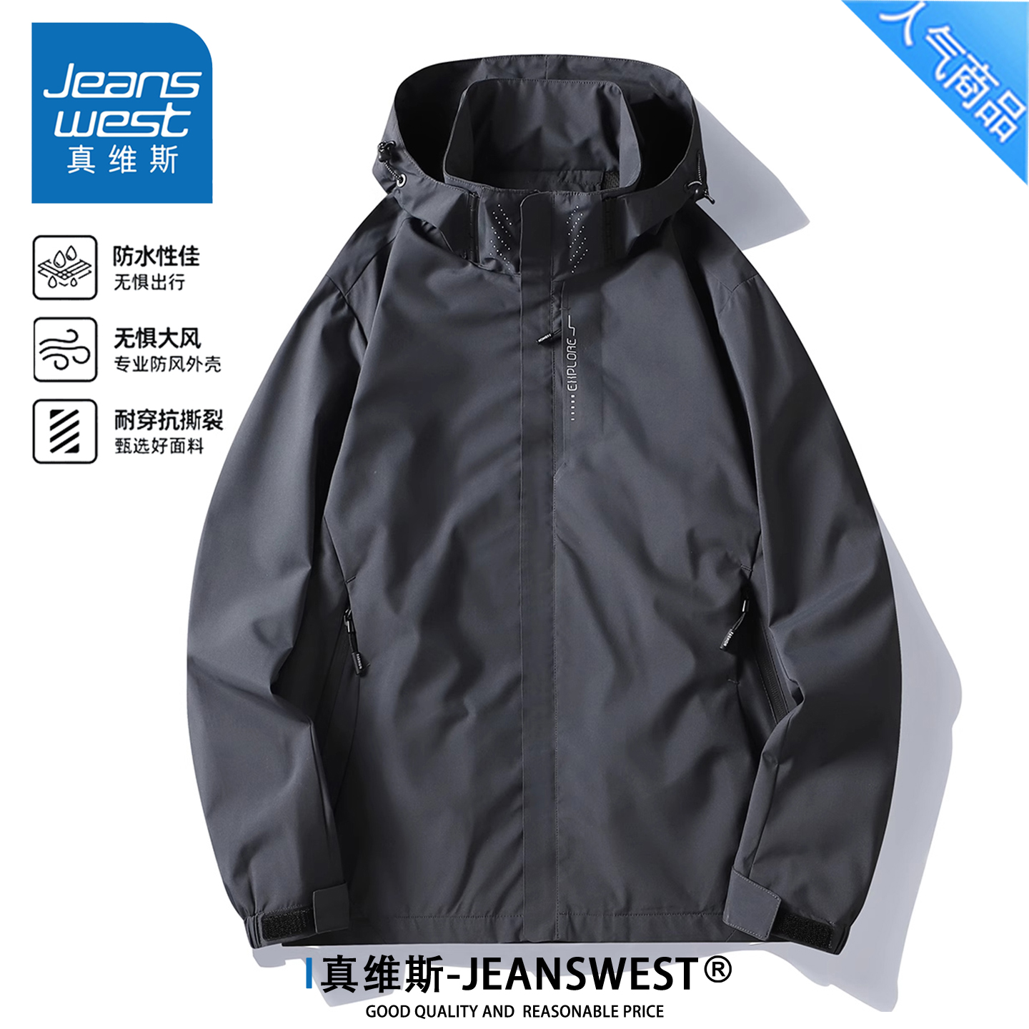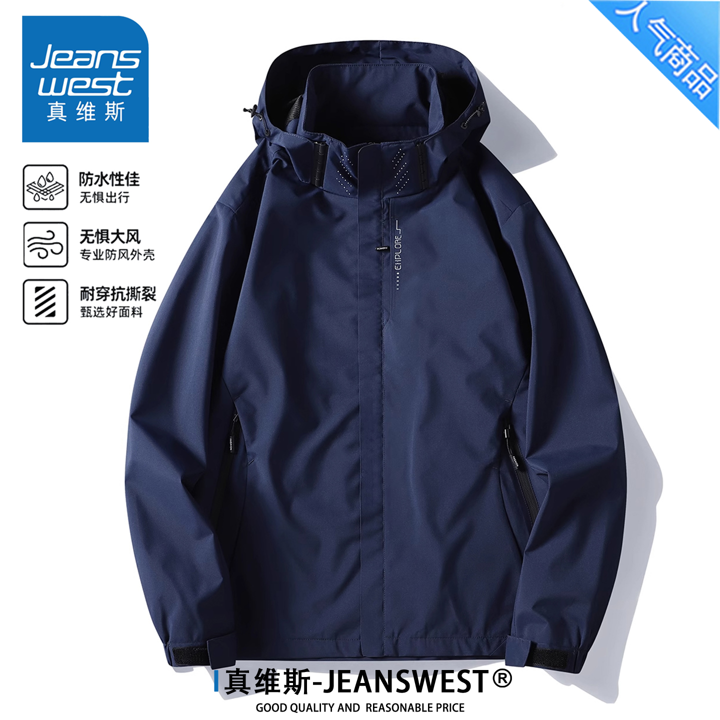 真维斯冲锋衣外套男女春秋季户外登山服防风防水徒步情侣休闲夹克