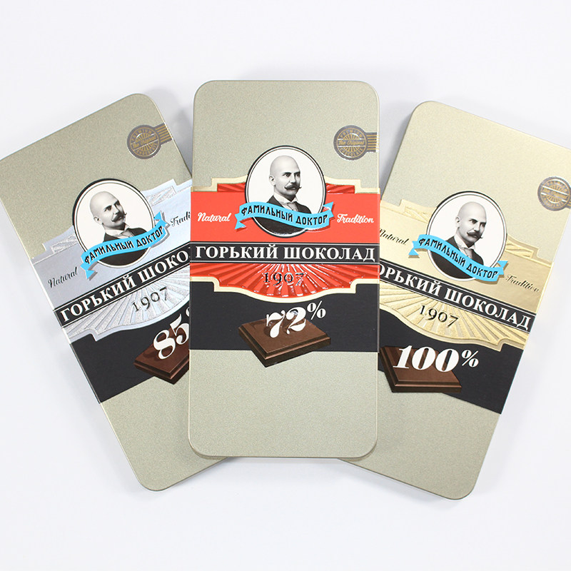 俄罗斯进口黑巧克力可可脂老教授世家牌健身食品休闲零食72%85%