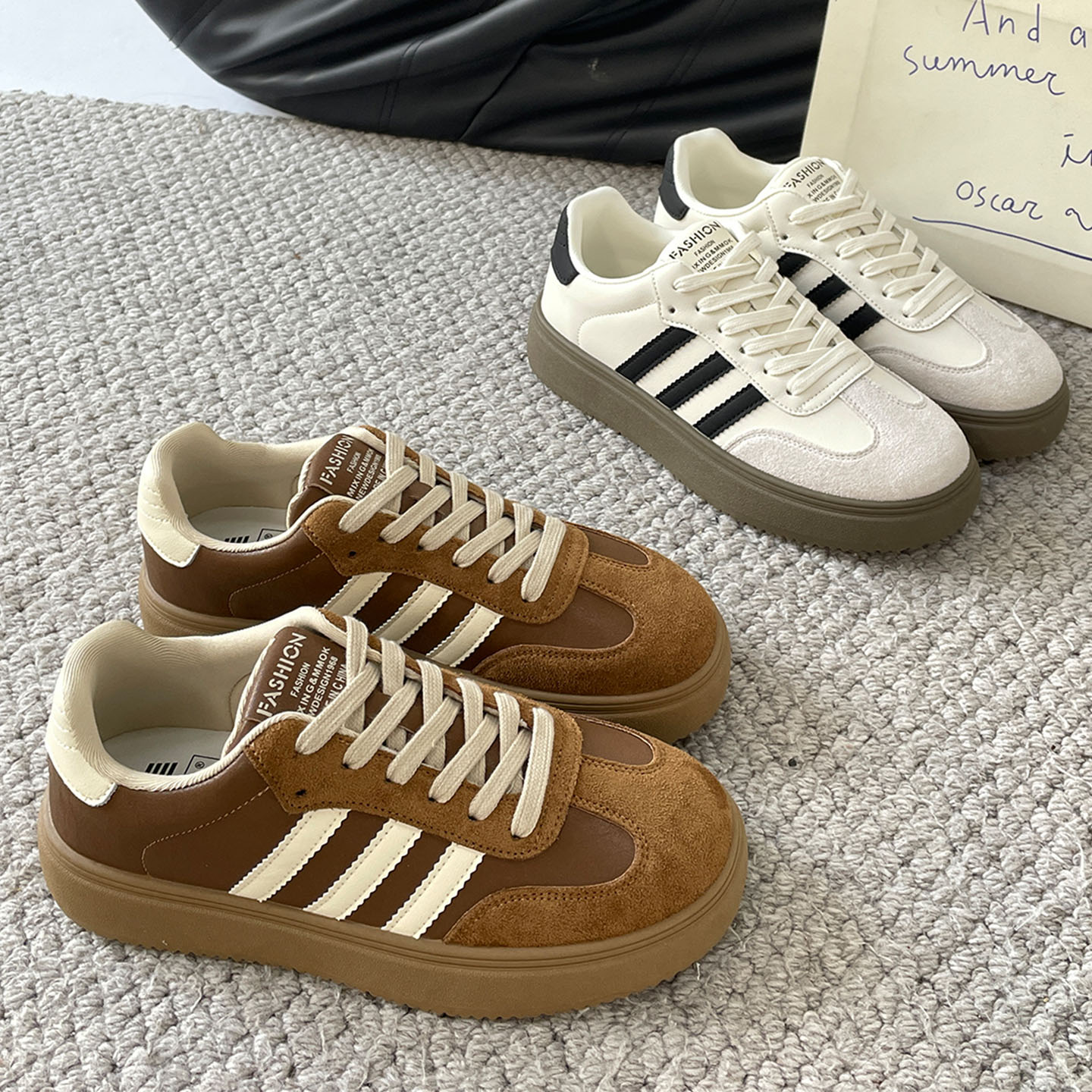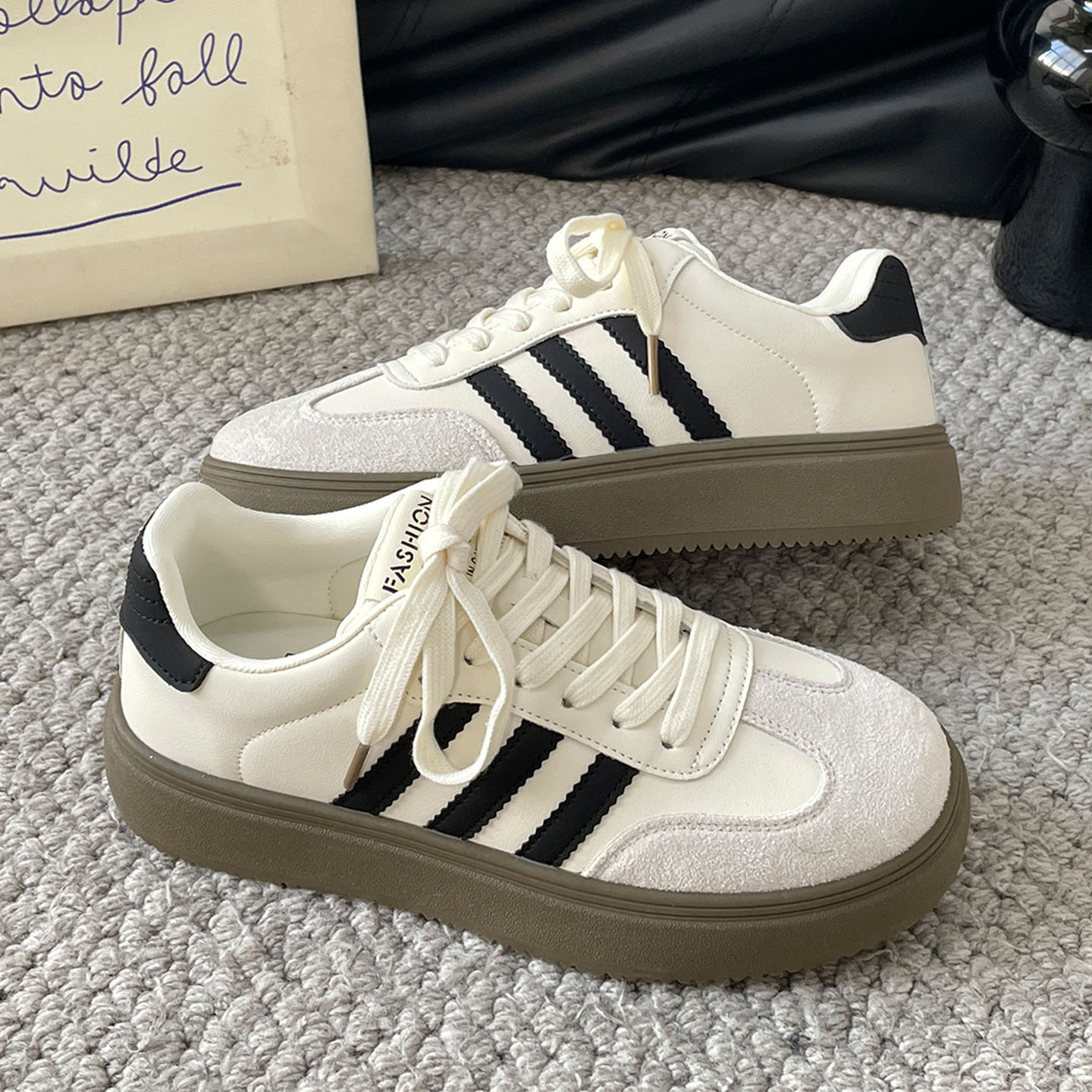 驼色经典厚底德训板鞋女2025秋季新款学生韩版时尚百搭休闲小白鞋