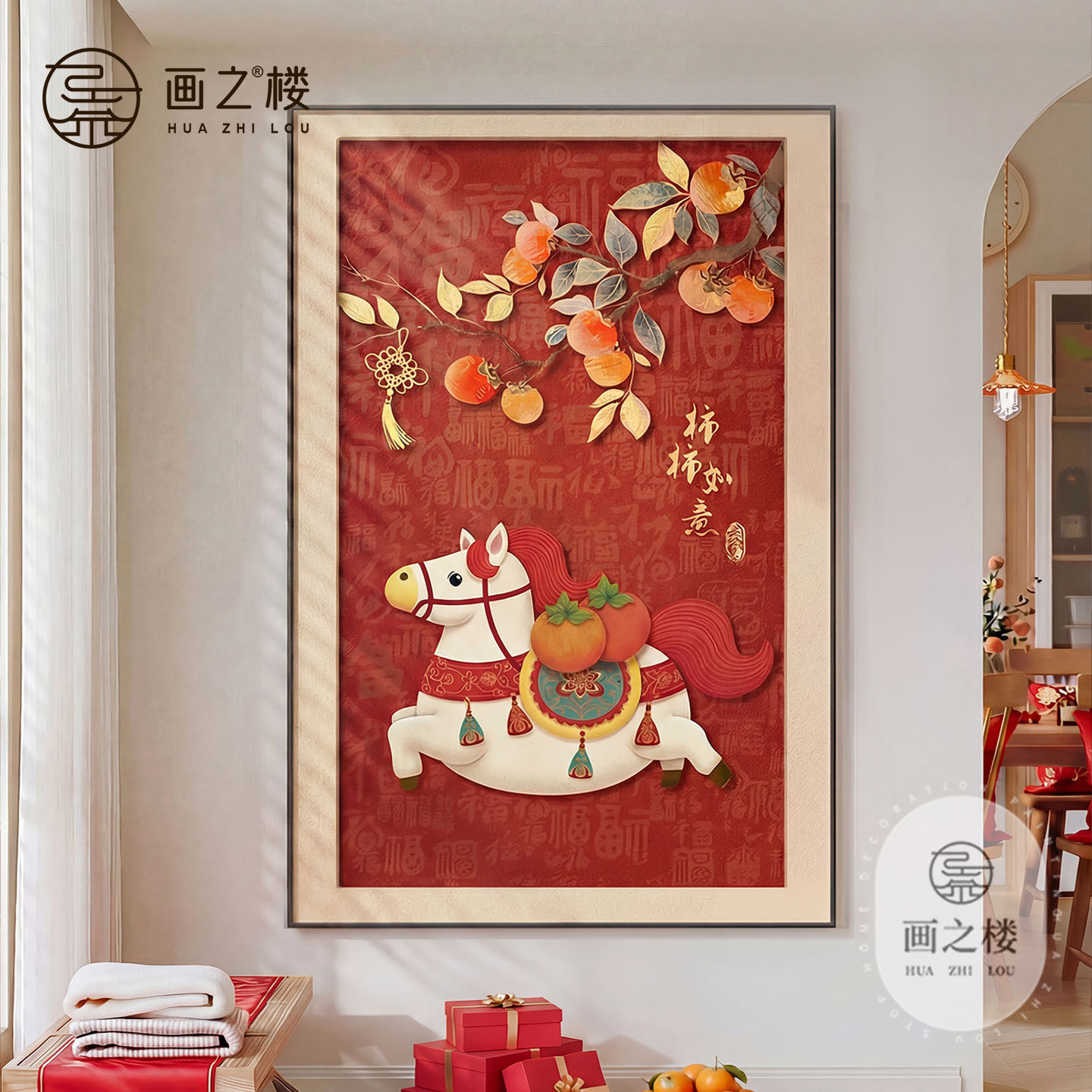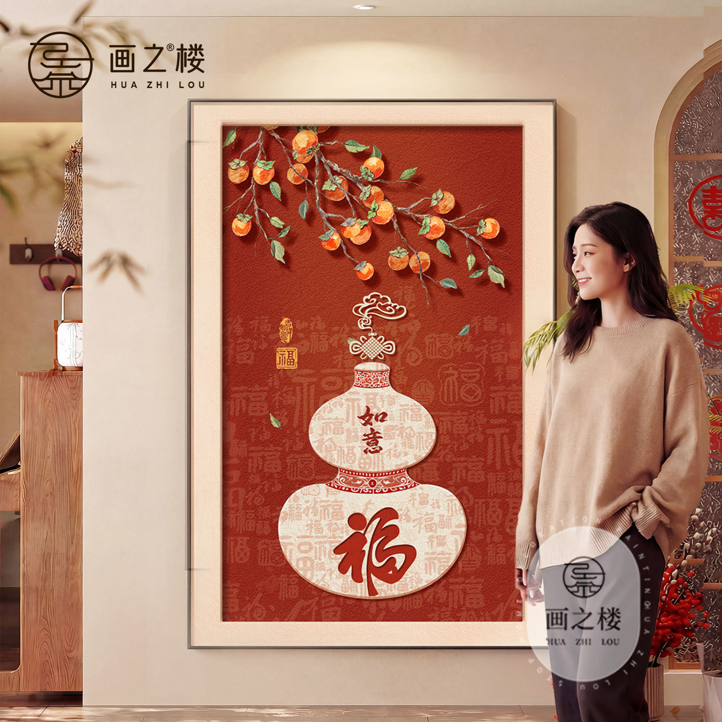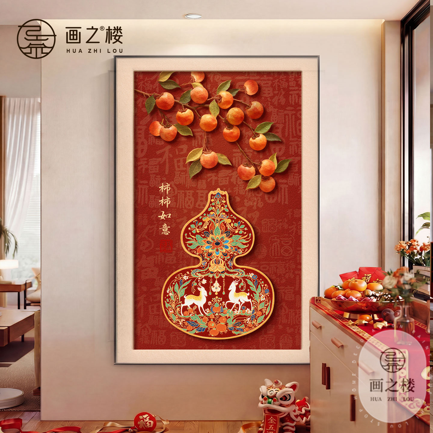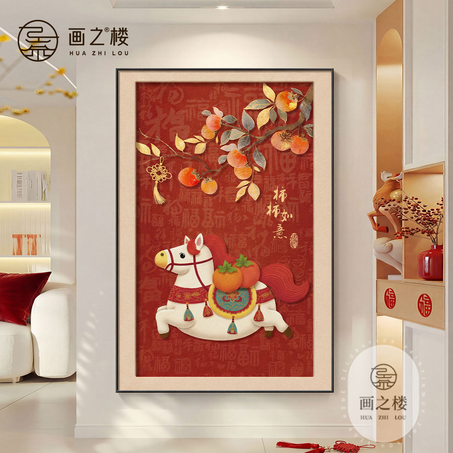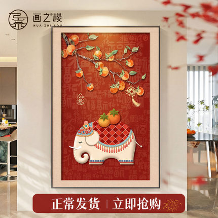 大象入户玄关装饰画中国风柿柿如意走廊过道挂画新中式客厅落地画