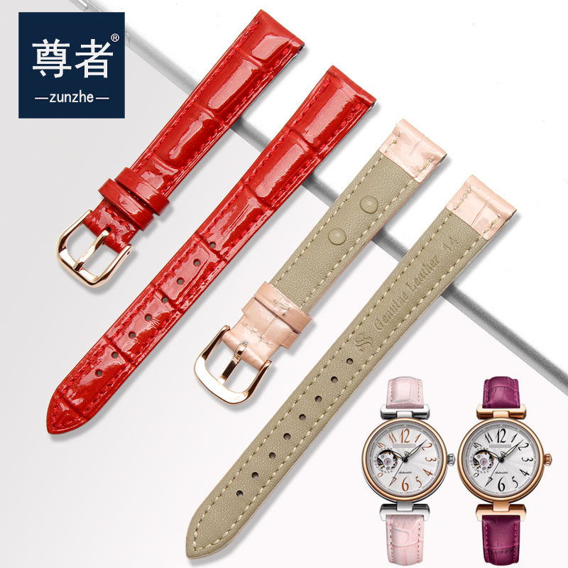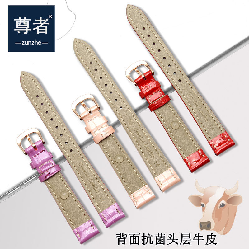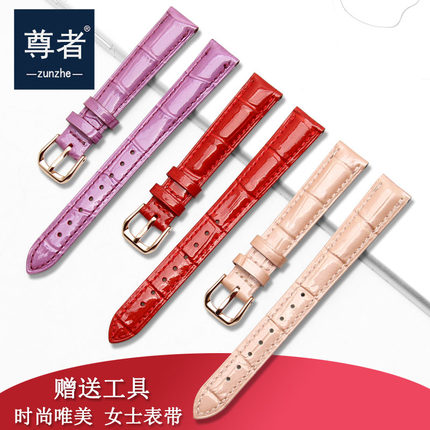 真皮表带女红色表链配件代用TISSOT天梭杜鲁尔T099 T085女款表带
