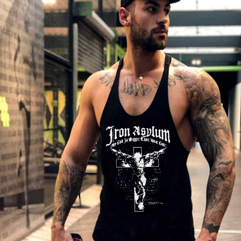 大码专业健身运动无袖宽松夏季棉潮牌男细带工字圆领训练背心