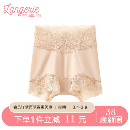 兰卓丽商场同款高腰安全裤纯棉底裆内裤女轻收小腹舒适蕾丝短裤